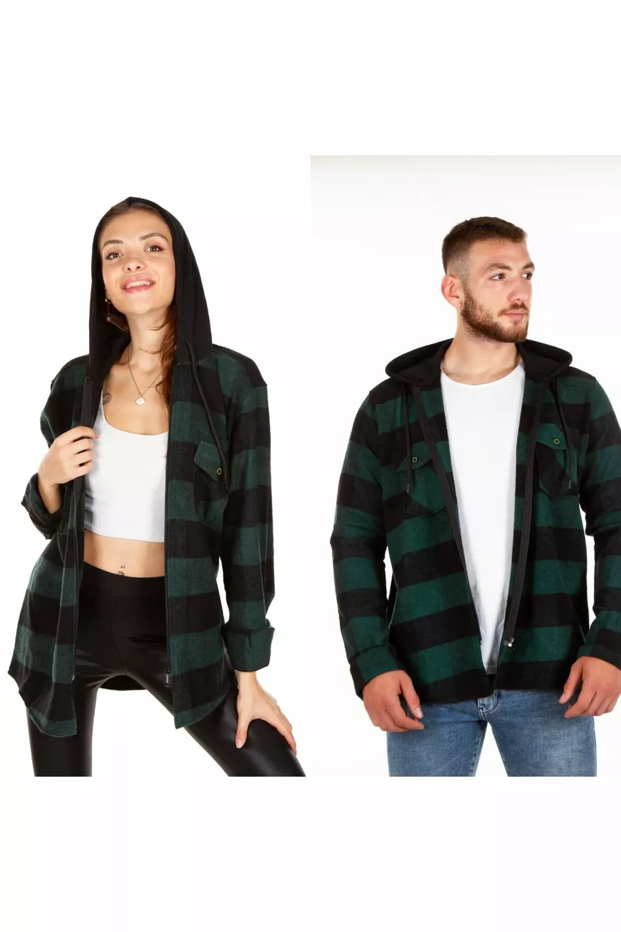 Camicia da Boscaiolo Unisex con Cappuccio e Zip
