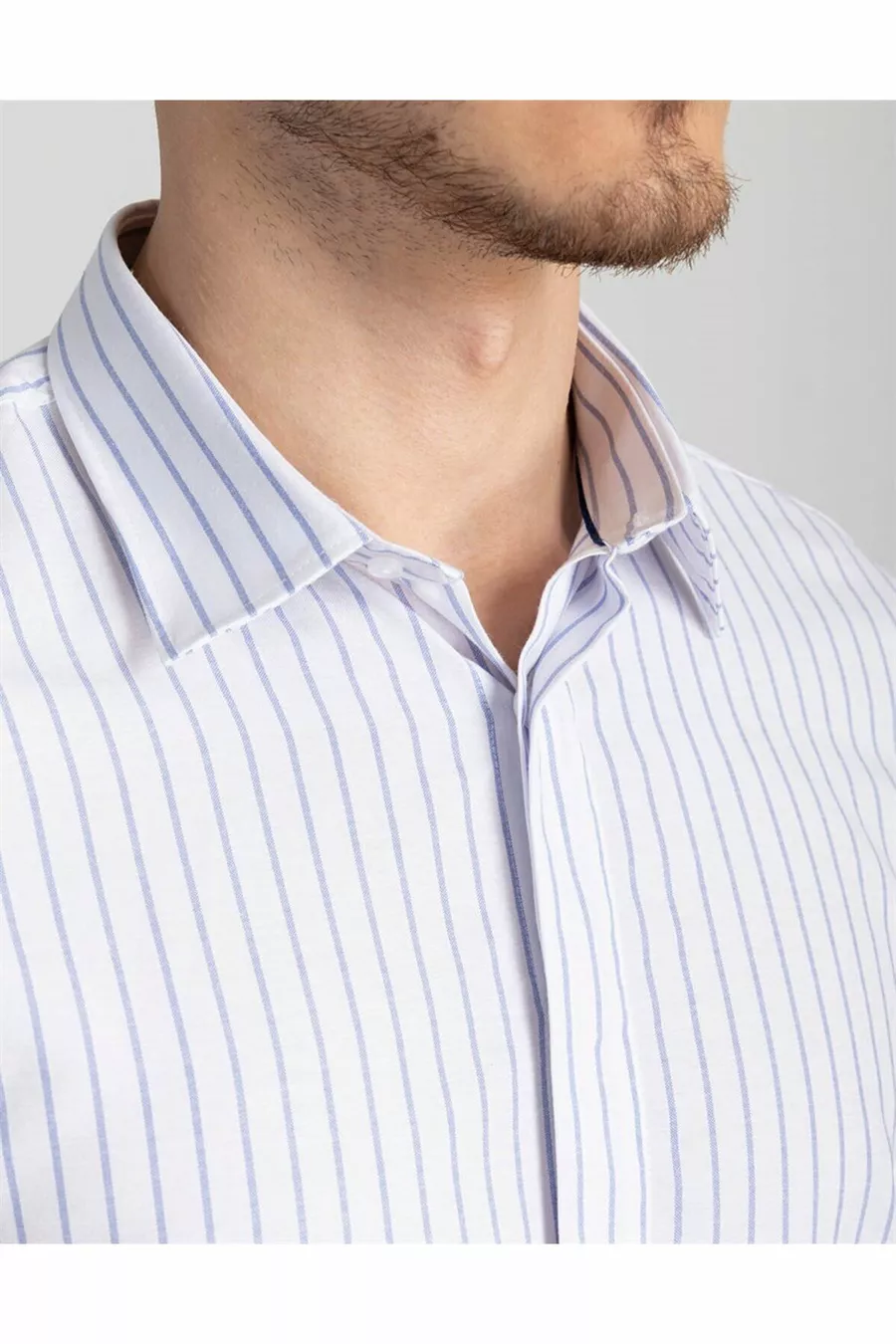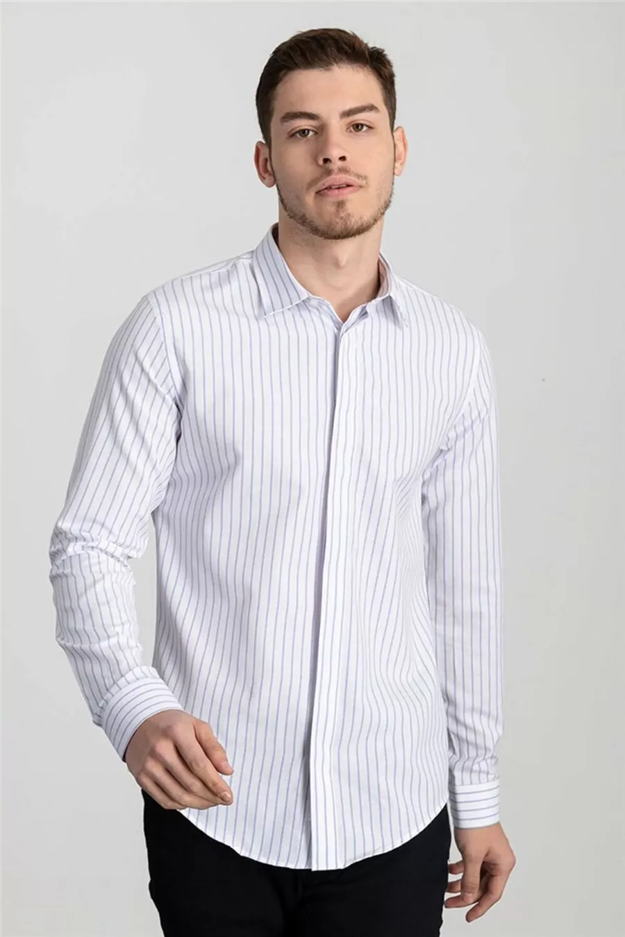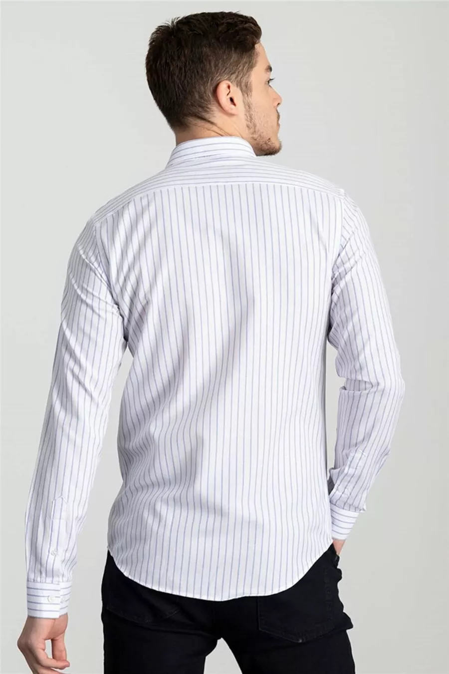 Camicia da uomo bianca a righe, slim fit, manica lunga, in cotone facile da stirare