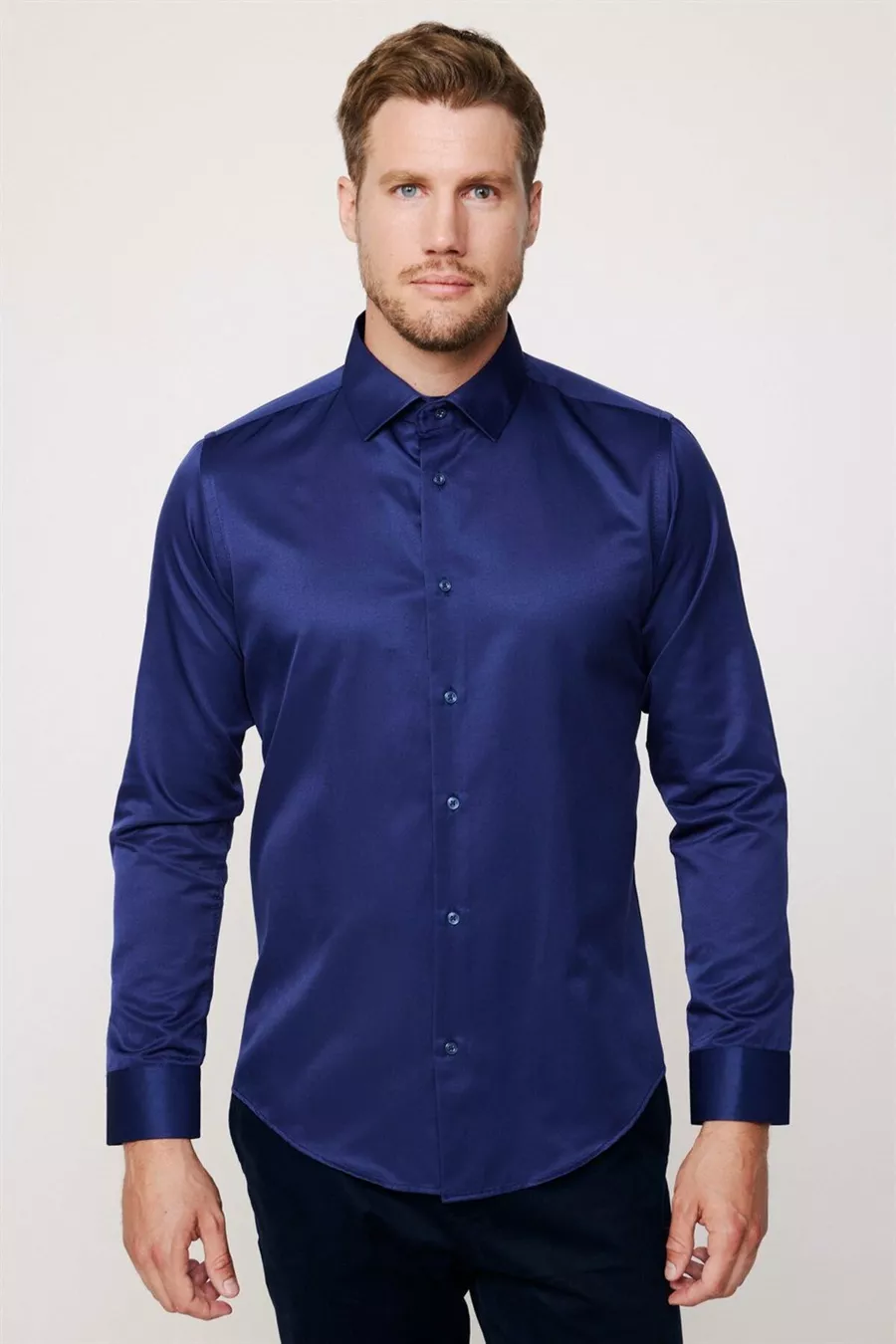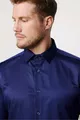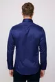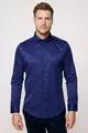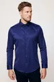 Camicia da uomo blu scuro a maniche lunghe in cotone, slim fit