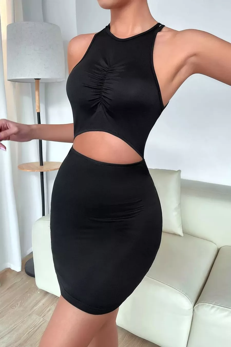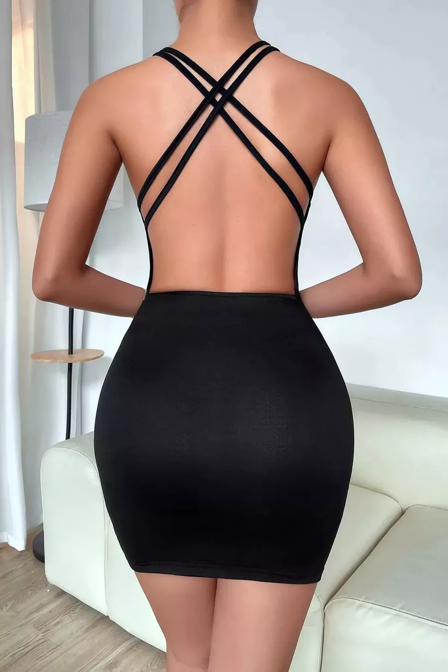 Camicia da notte da donna nera con scollo a V e dettagli incrociati sulla schiena