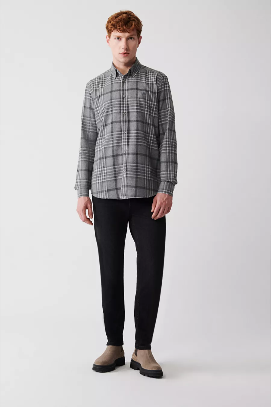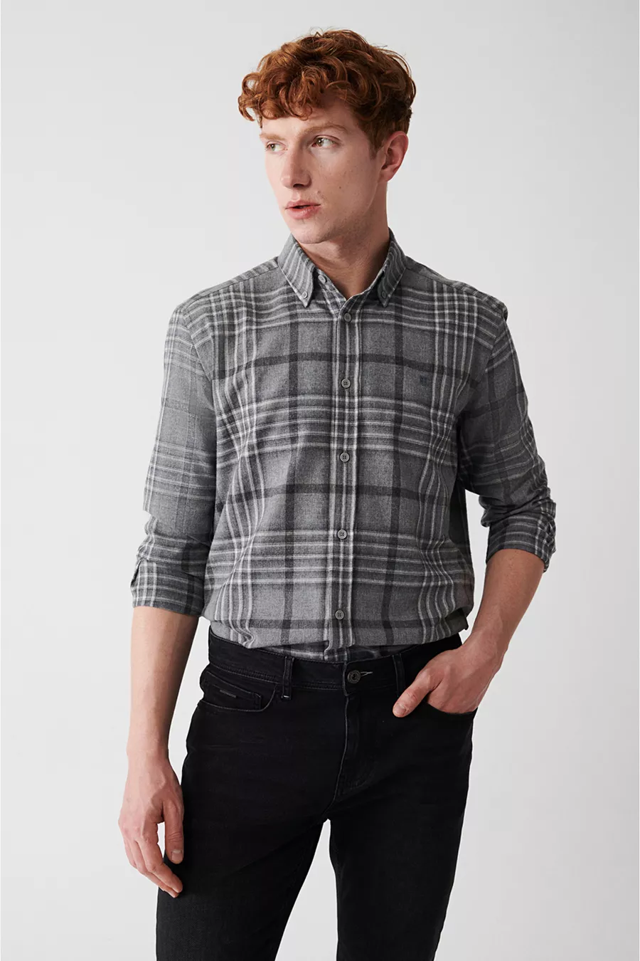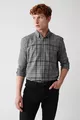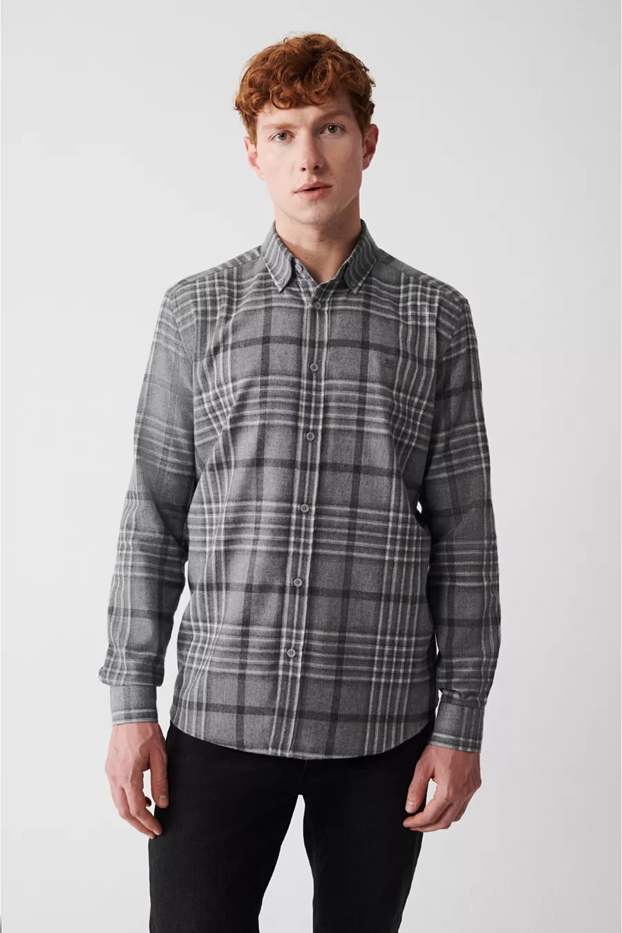 Camicia da uomo in flanella scozzese grigia con bottoni