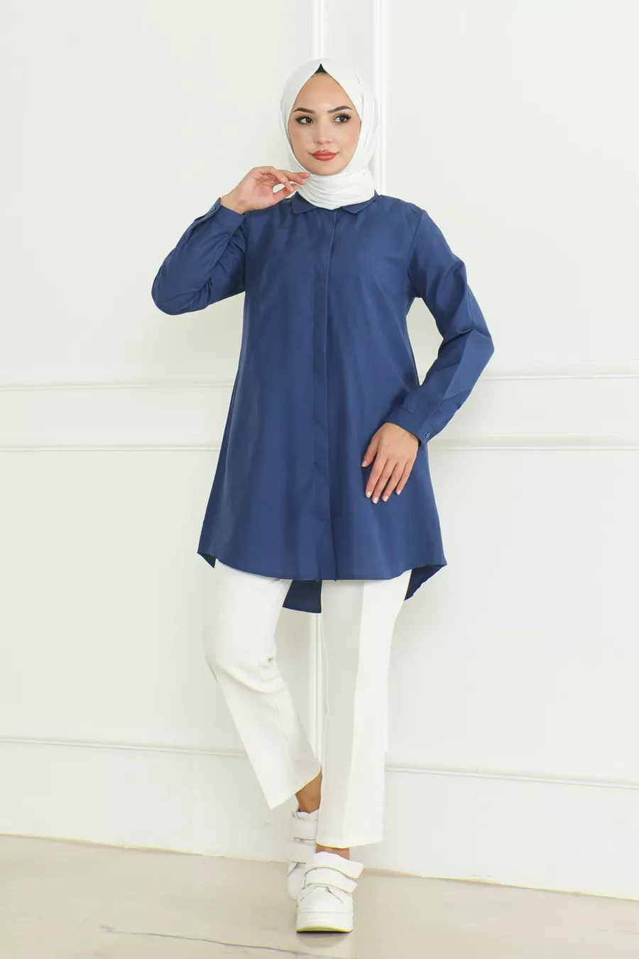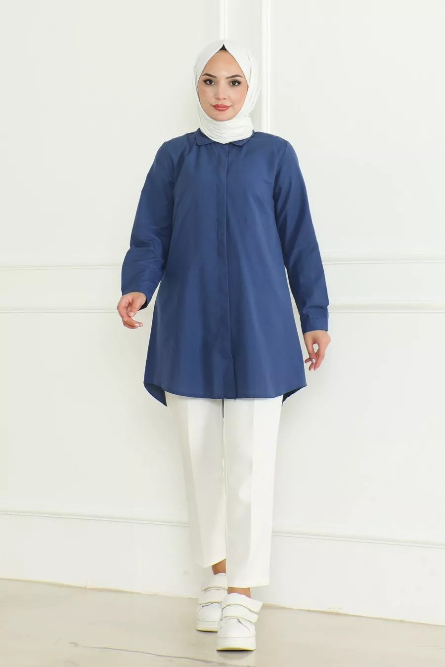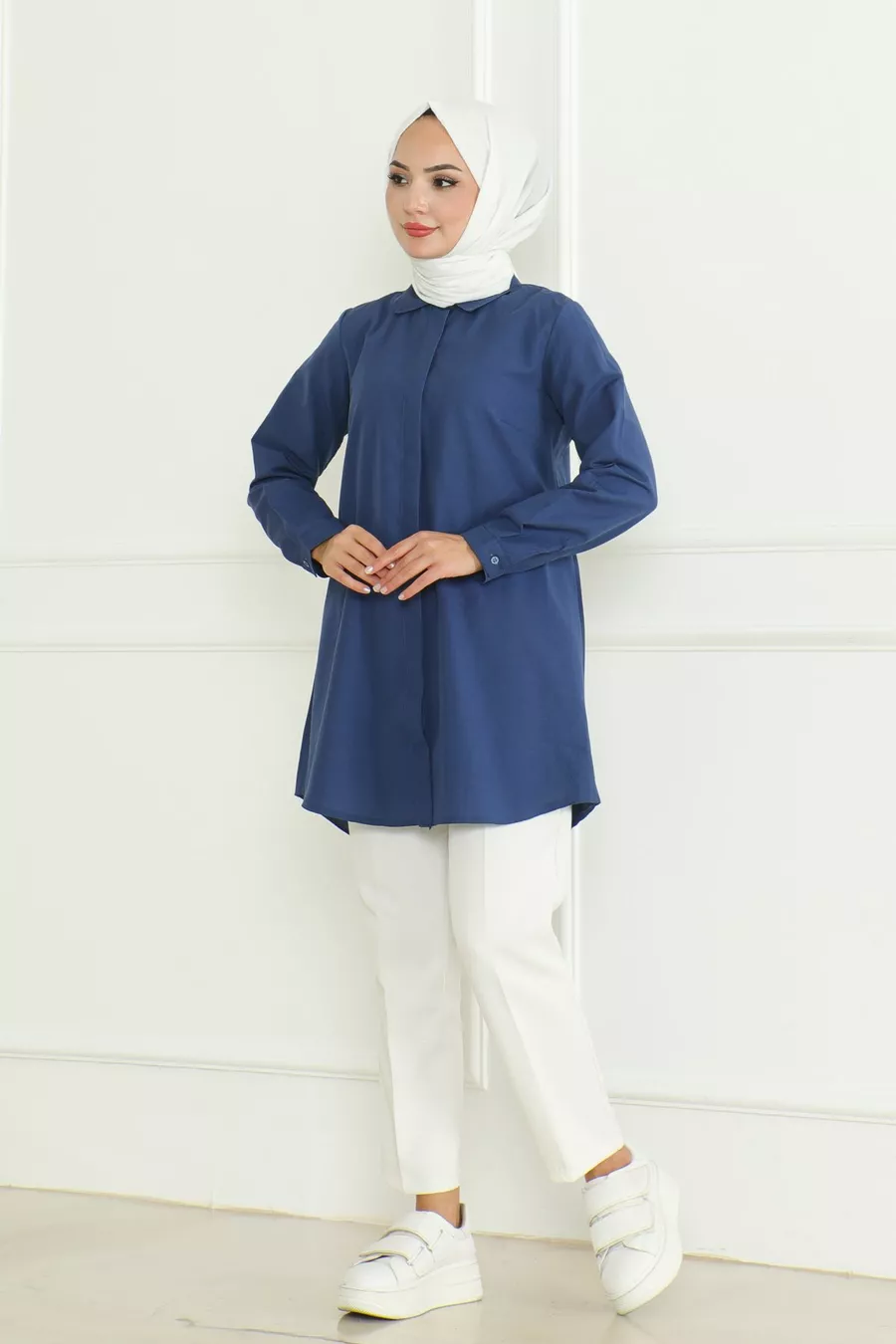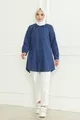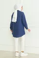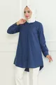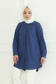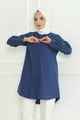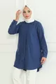 Camicia da donna indaco blu Terikoton con bottoni nascosti stile boyfriend e copertura completa