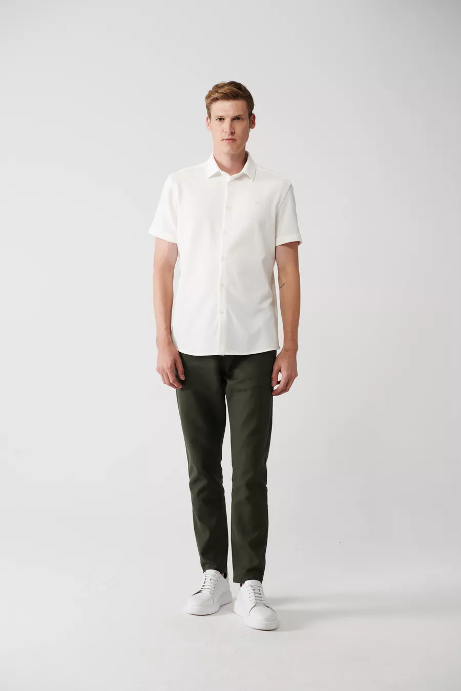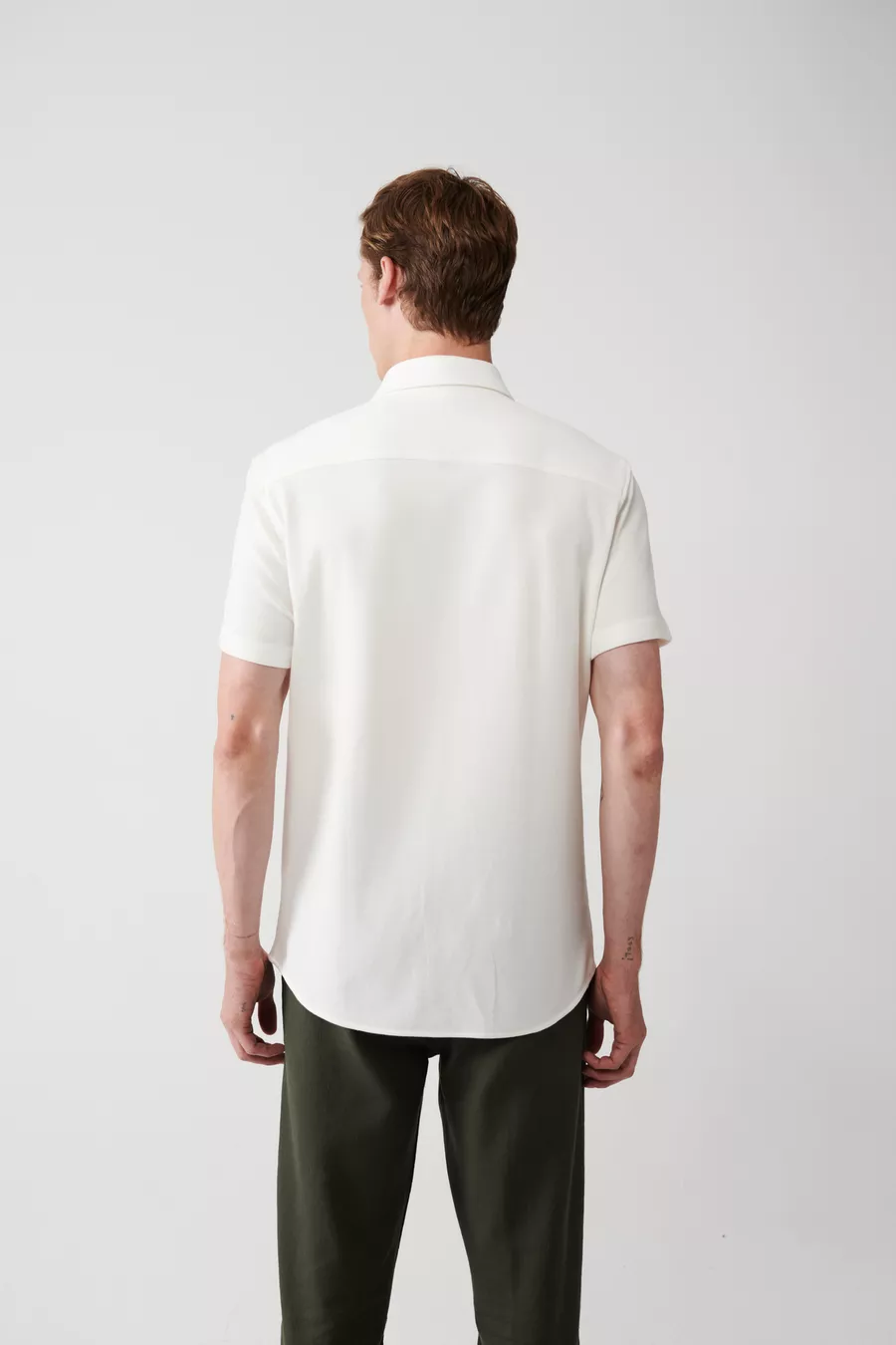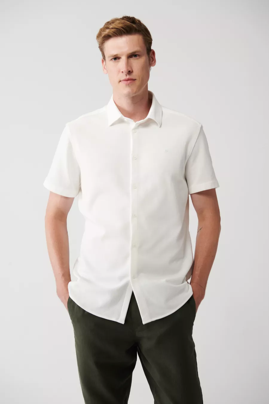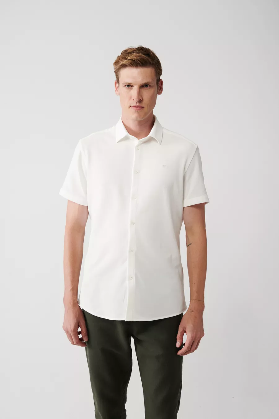 Camicia da uomo bianca, facile da stirare, collo classico, in cotone elasticizzato a maglia, maniche corte, codice