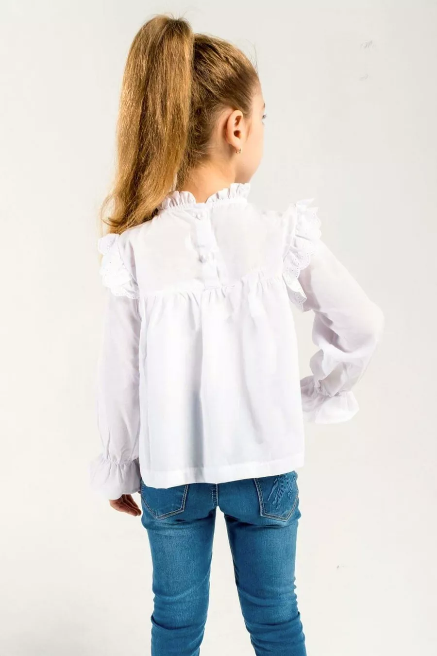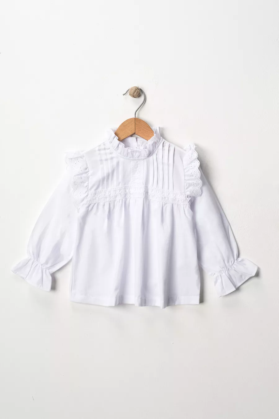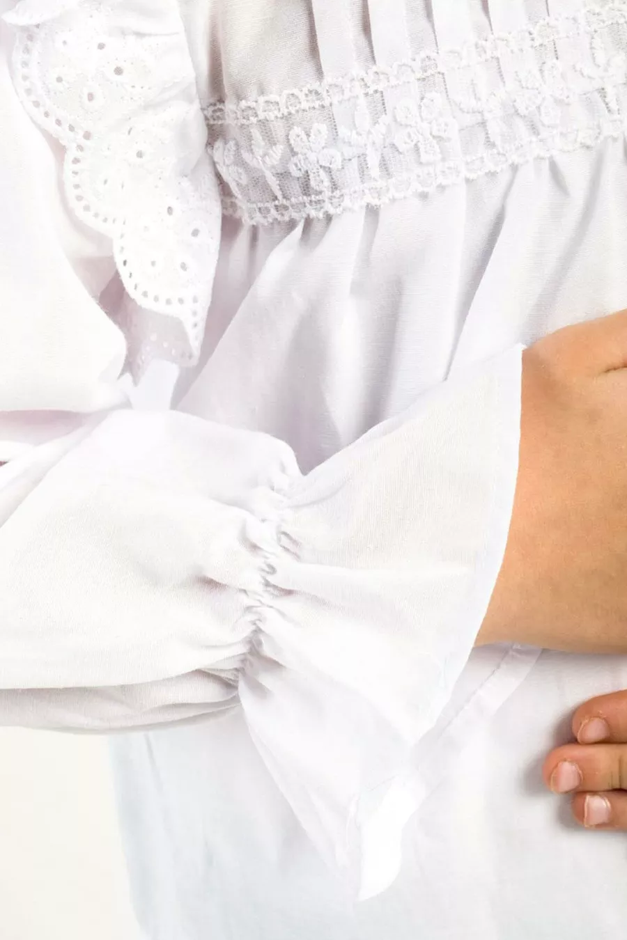 Camicia da bambina esclusiva con dettagli in pizzo e volant, anni