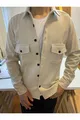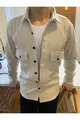 Camicia da uomo Slim Fit avorio con collo con bottoni, doppie tasche e design da boscaiolo