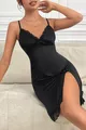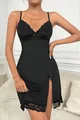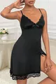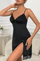 Camicia da notte elegante da donna nera in pizzo con fiocco e spacco