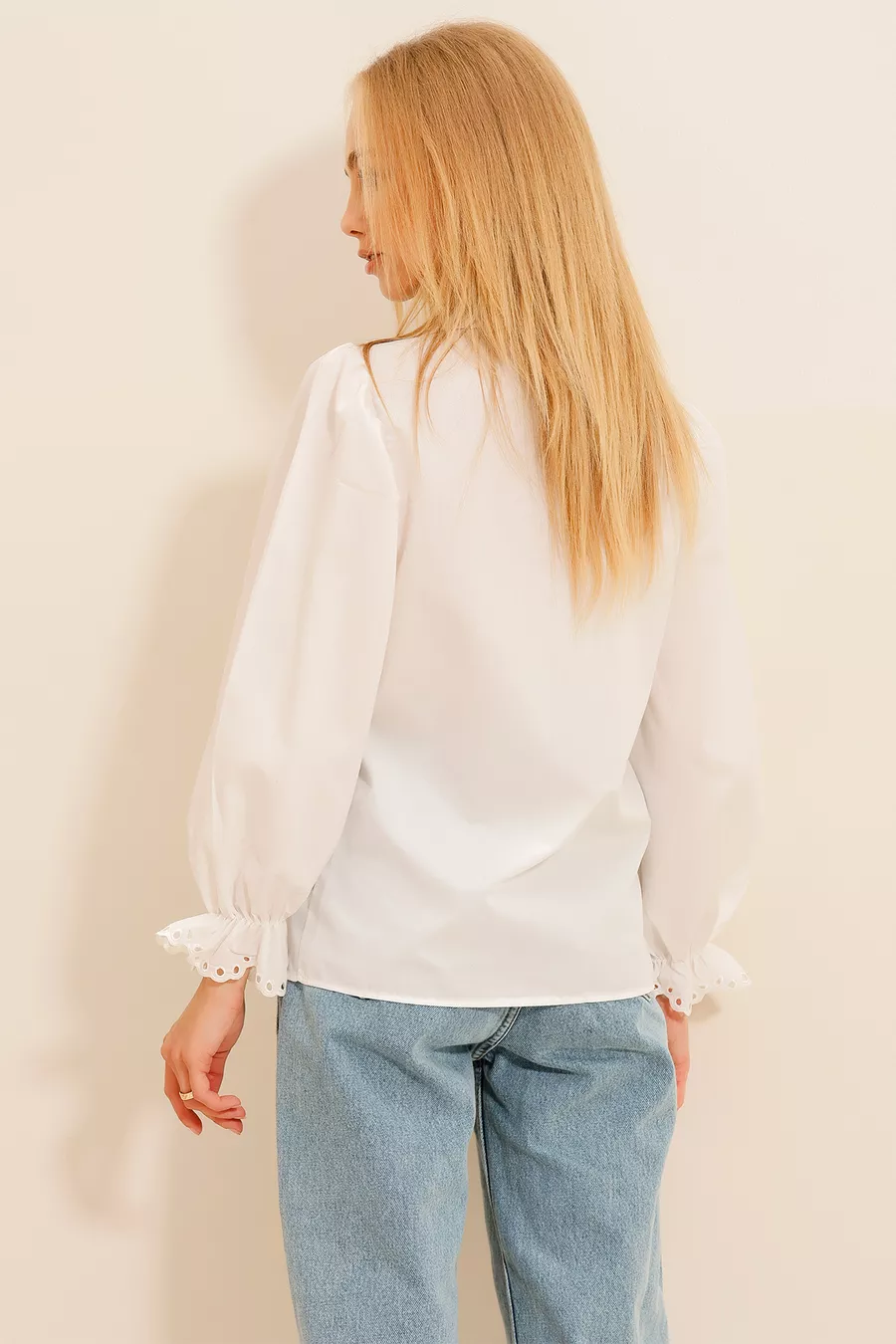 Camicia Donna Bianco Principessa con Pizzo Ricamato