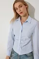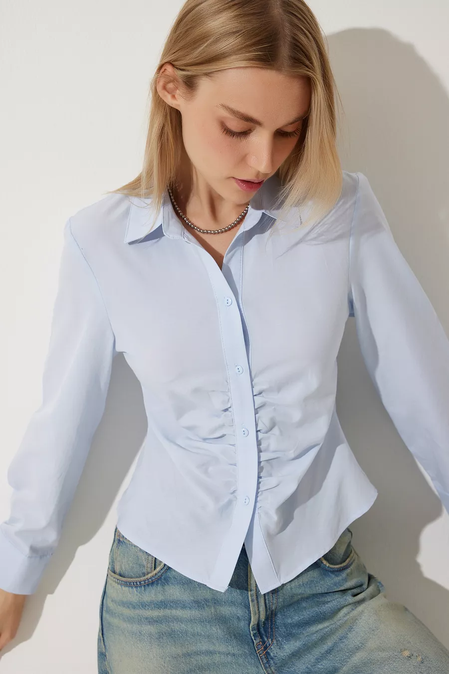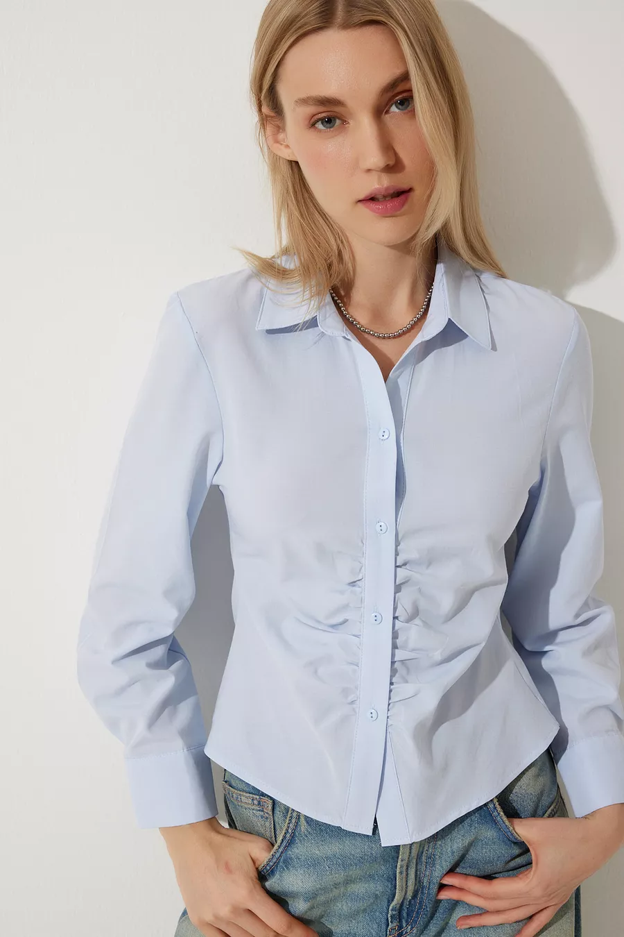 Camicia Donna Azzurro Cielo con Dettaglio Arricciato