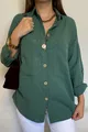 Camicia donna kaki in cotone e lino con bottoni in legno % cotone % lino
