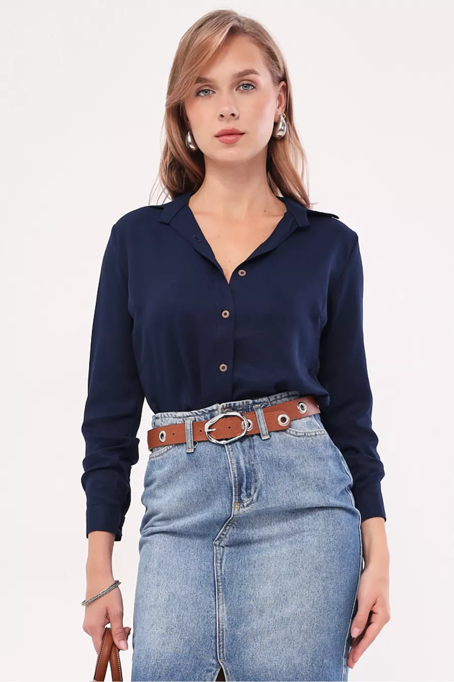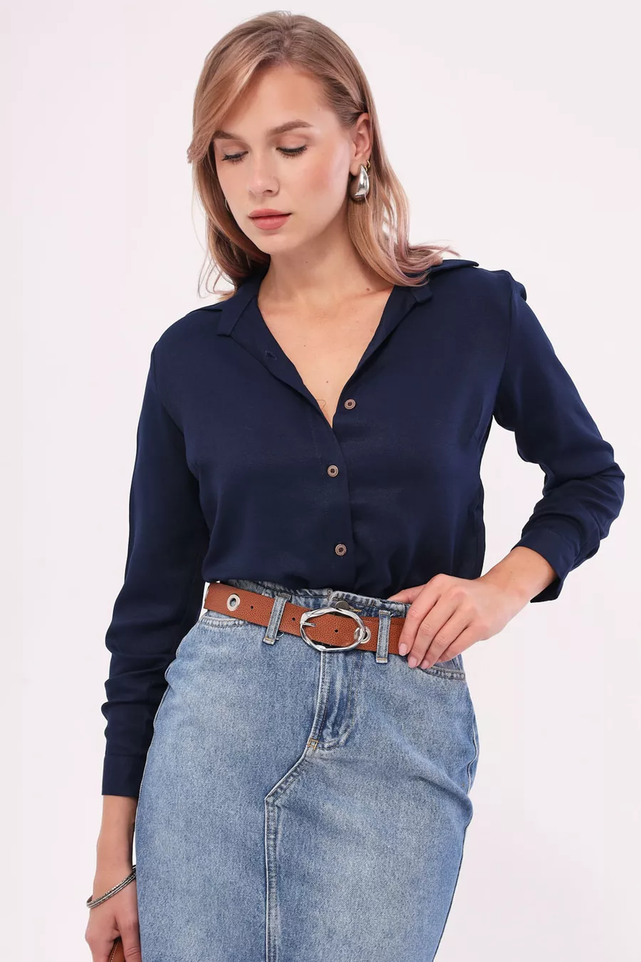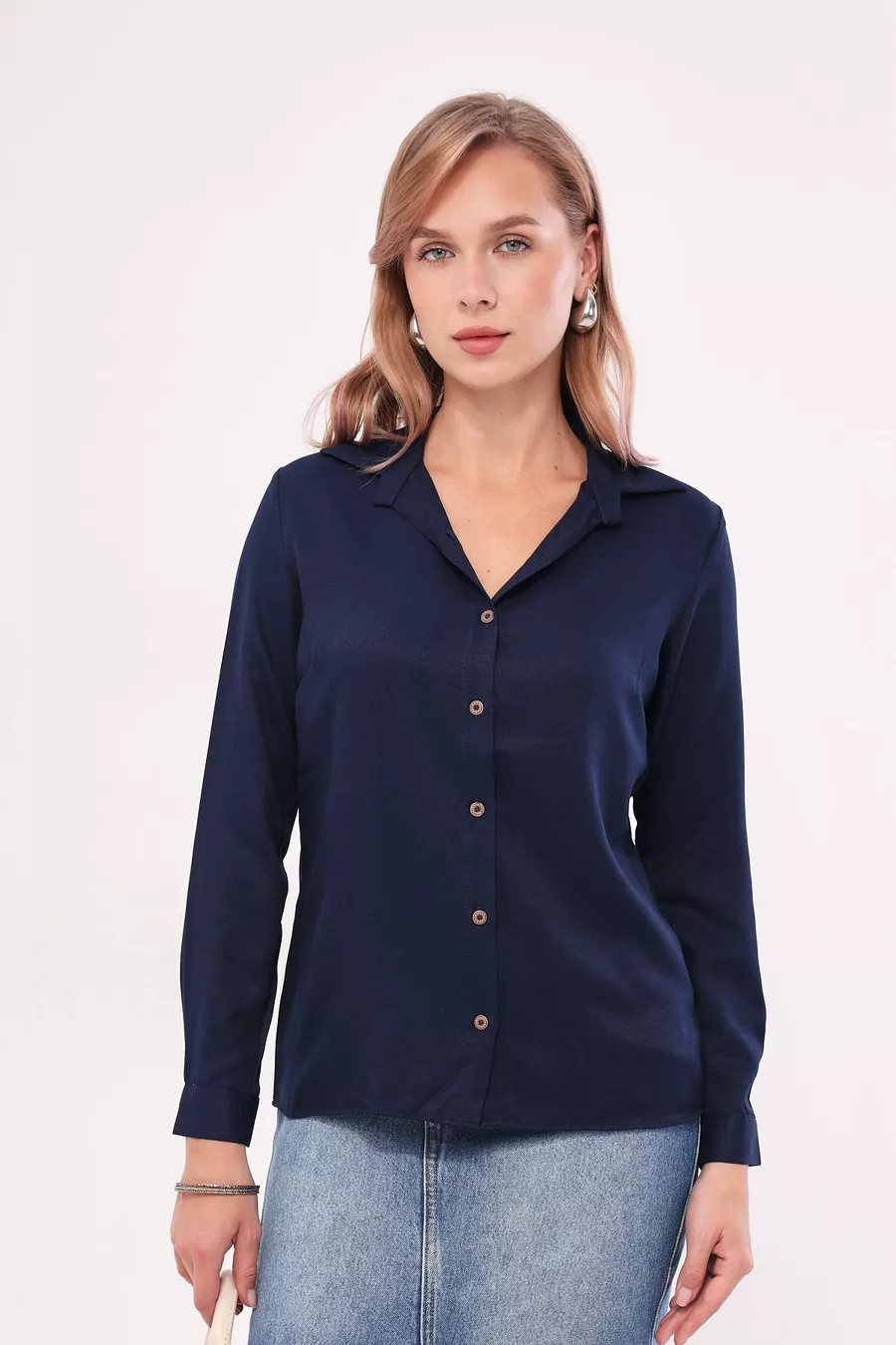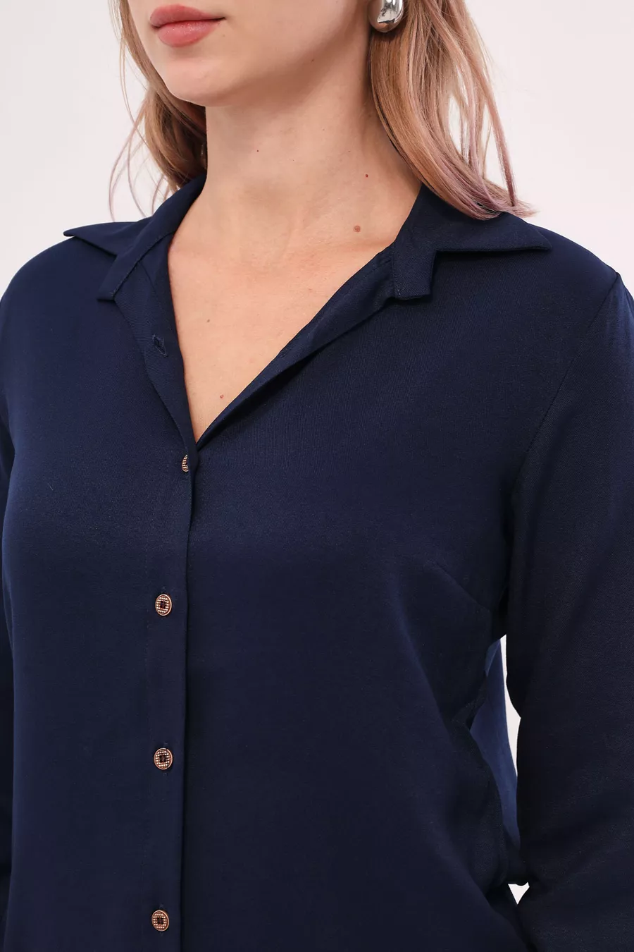 Camicia Donna Blu Scuro a Maniche Lunghe