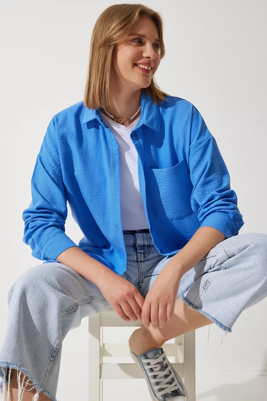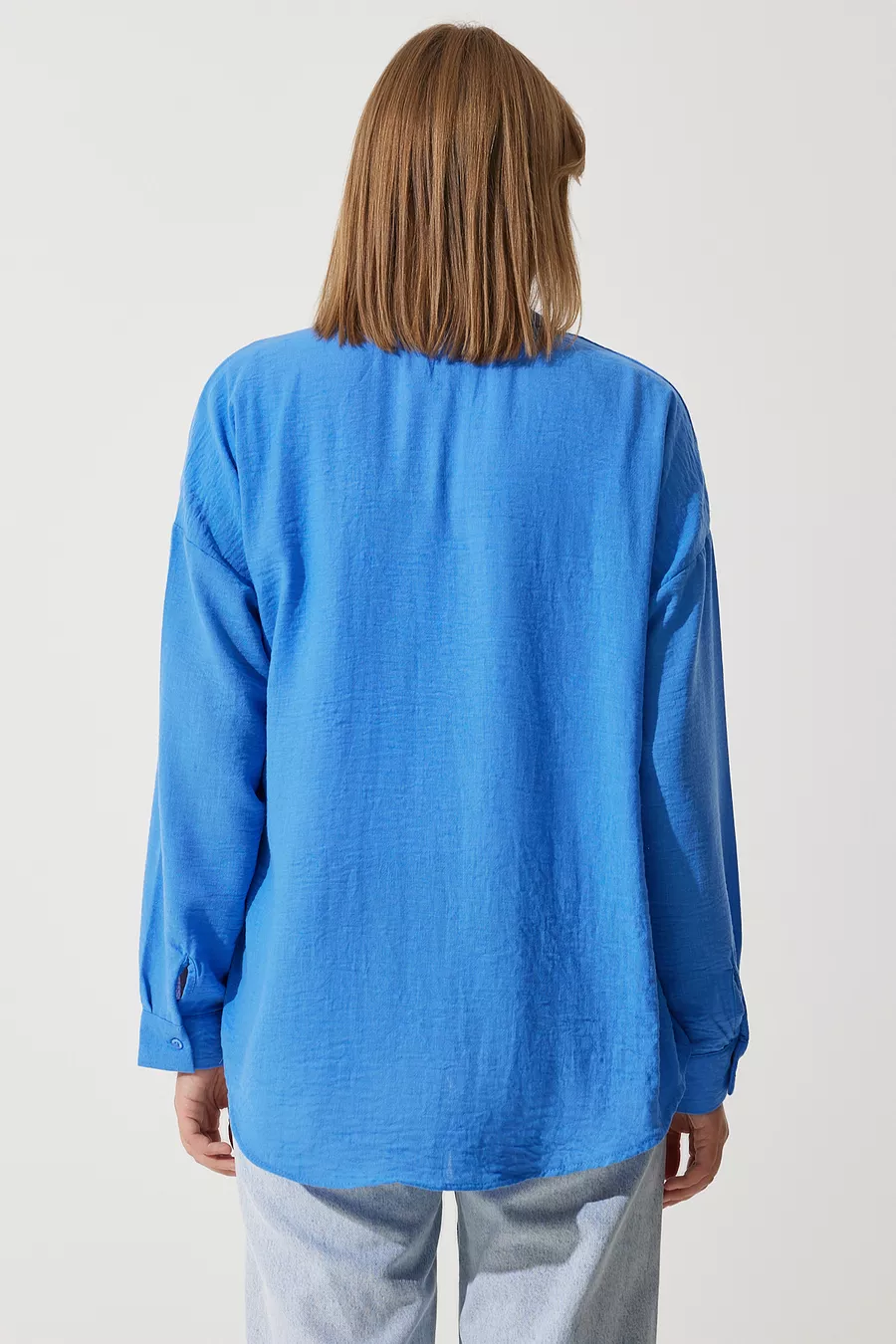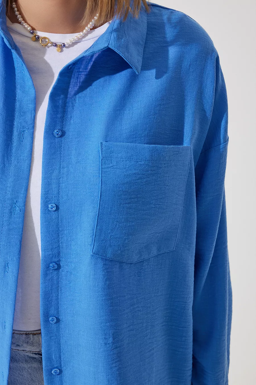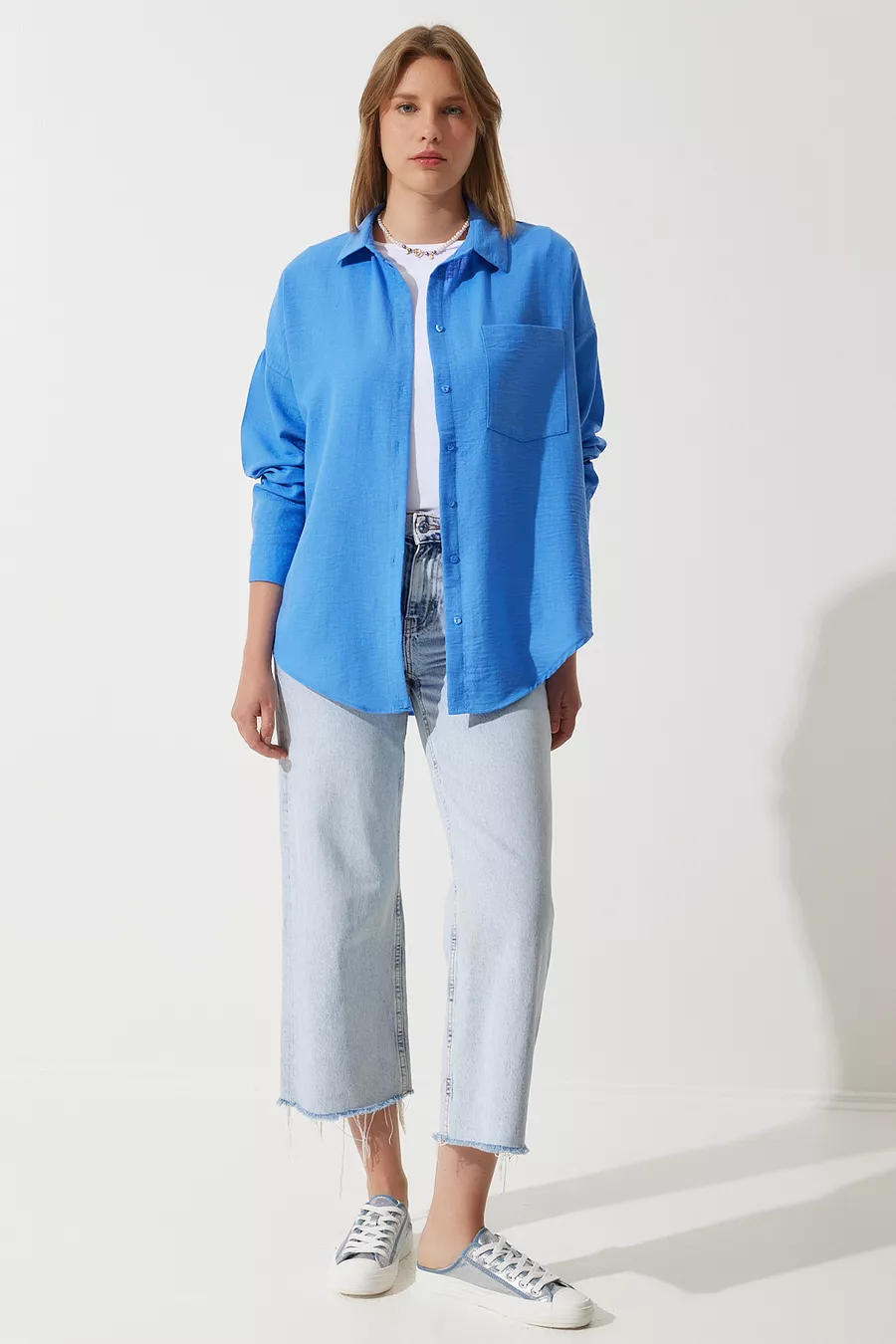 Camicia Donna Oversize in Lino Azzurro Ayrobin