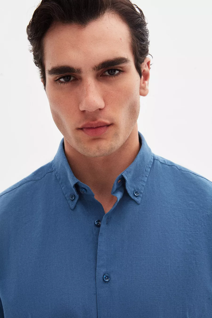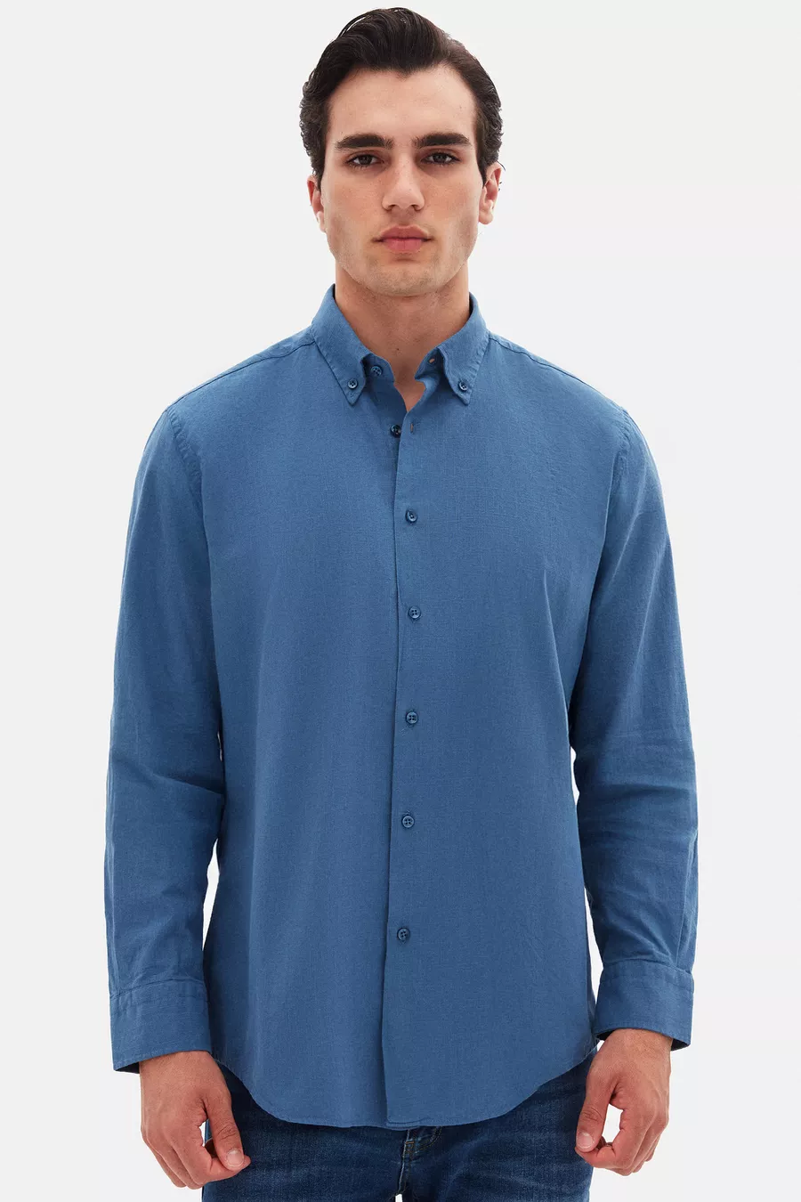 Camicia Ds Damat Comfort in cotone %, effetto lino, collo con bottoni e taglio comodo colore indaco
