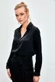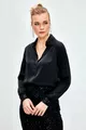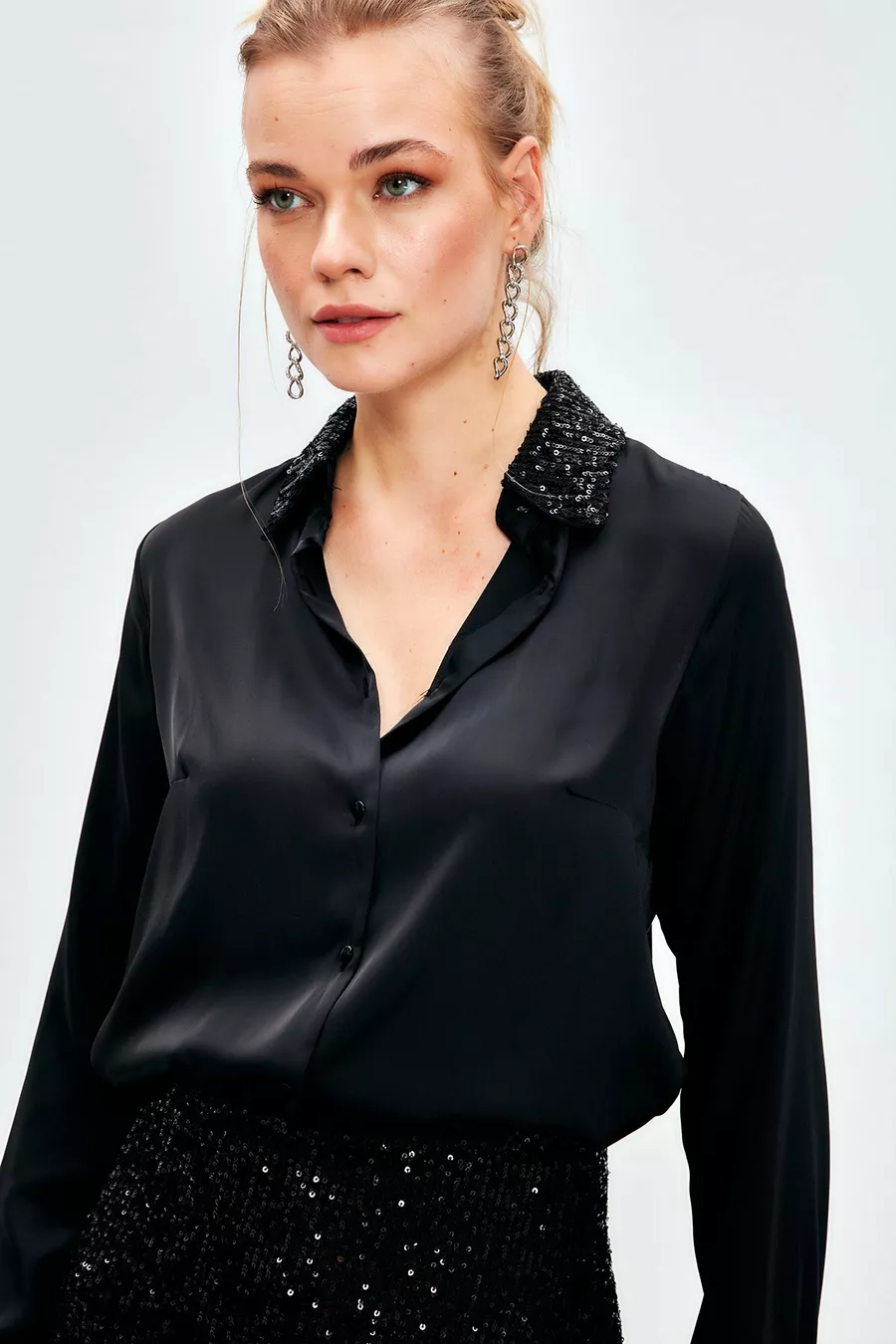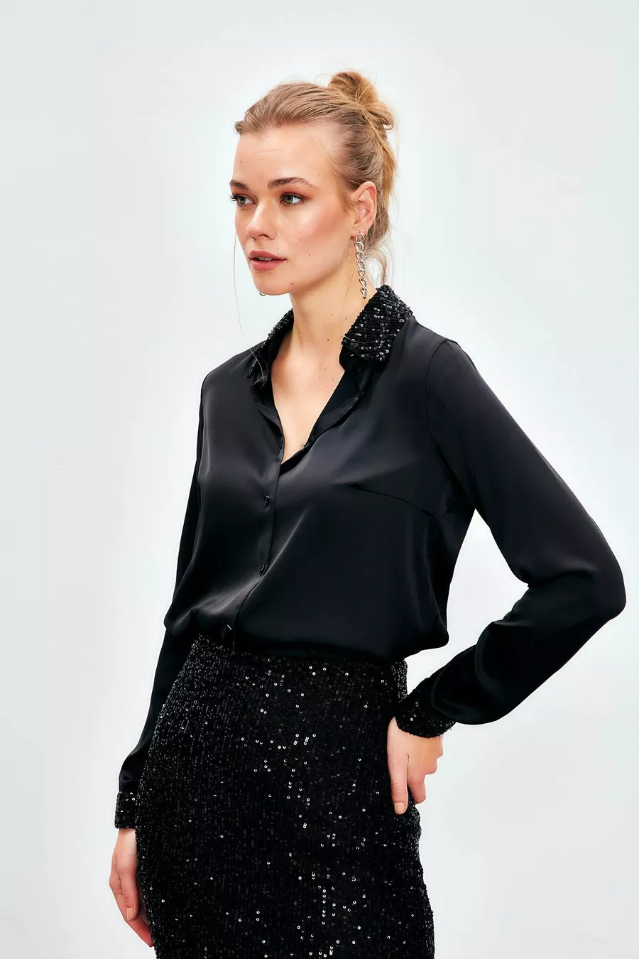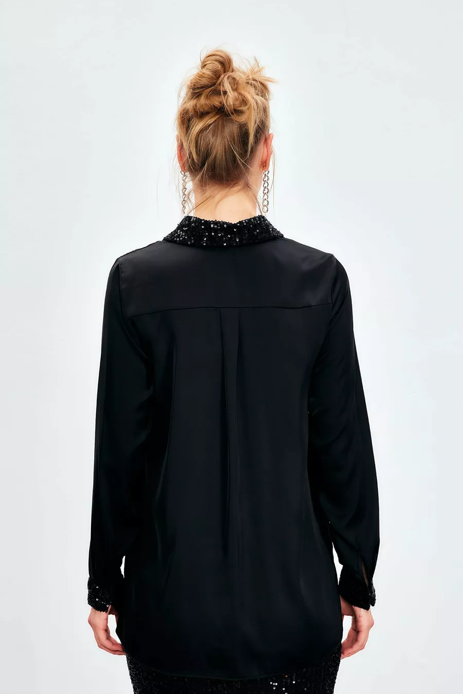 Camicia in raso con dettagli di paillettes - NERO