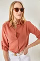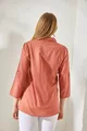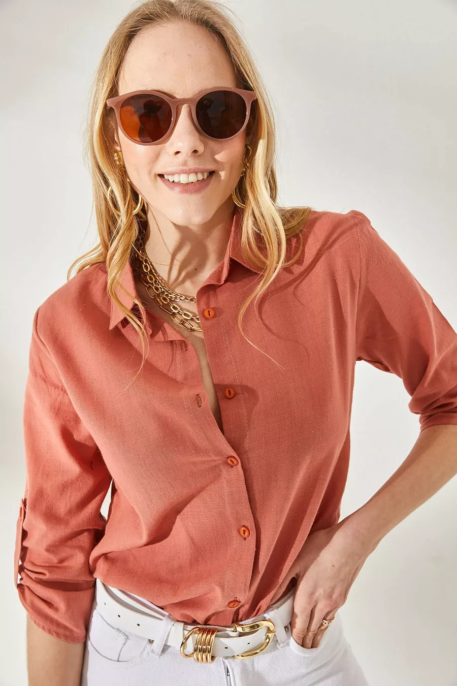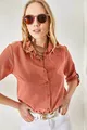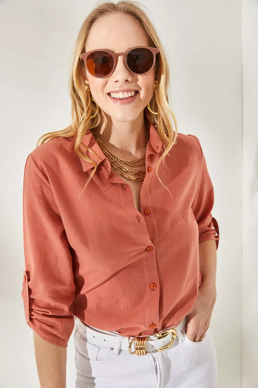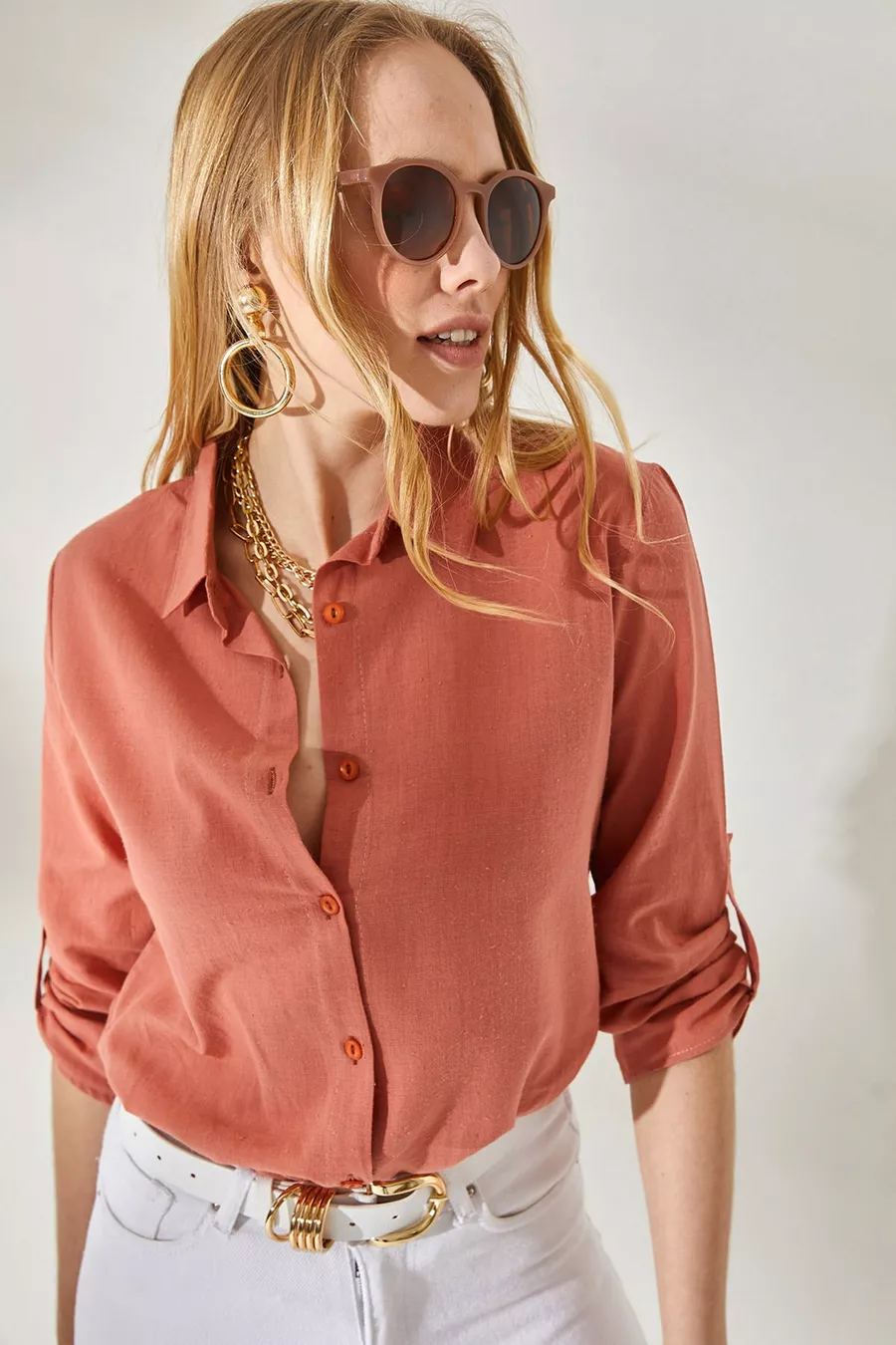 Camicia in Lino da Donna con Maniche a Palloncino e Piega, Buccia di Cipolla