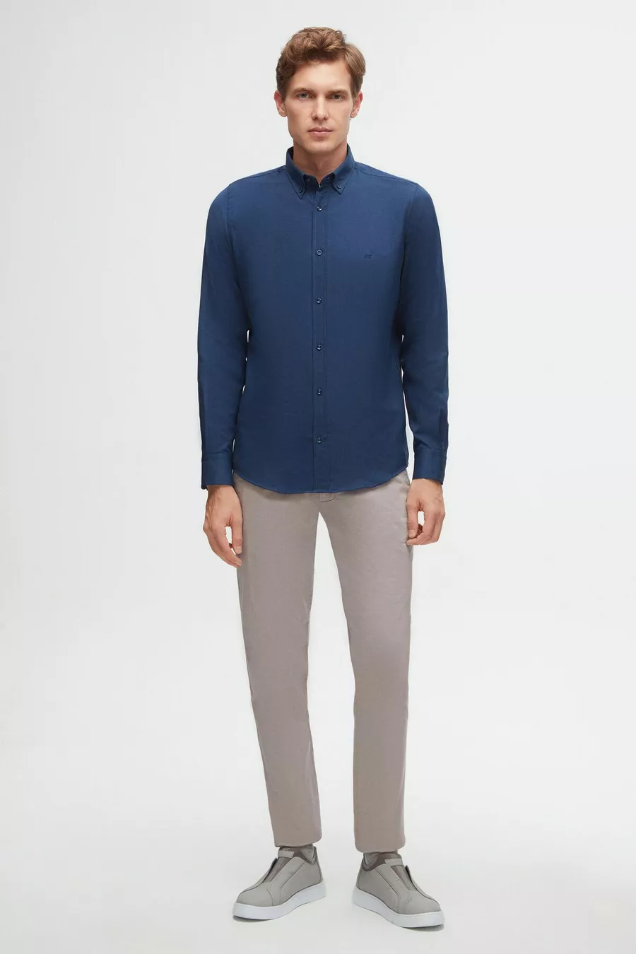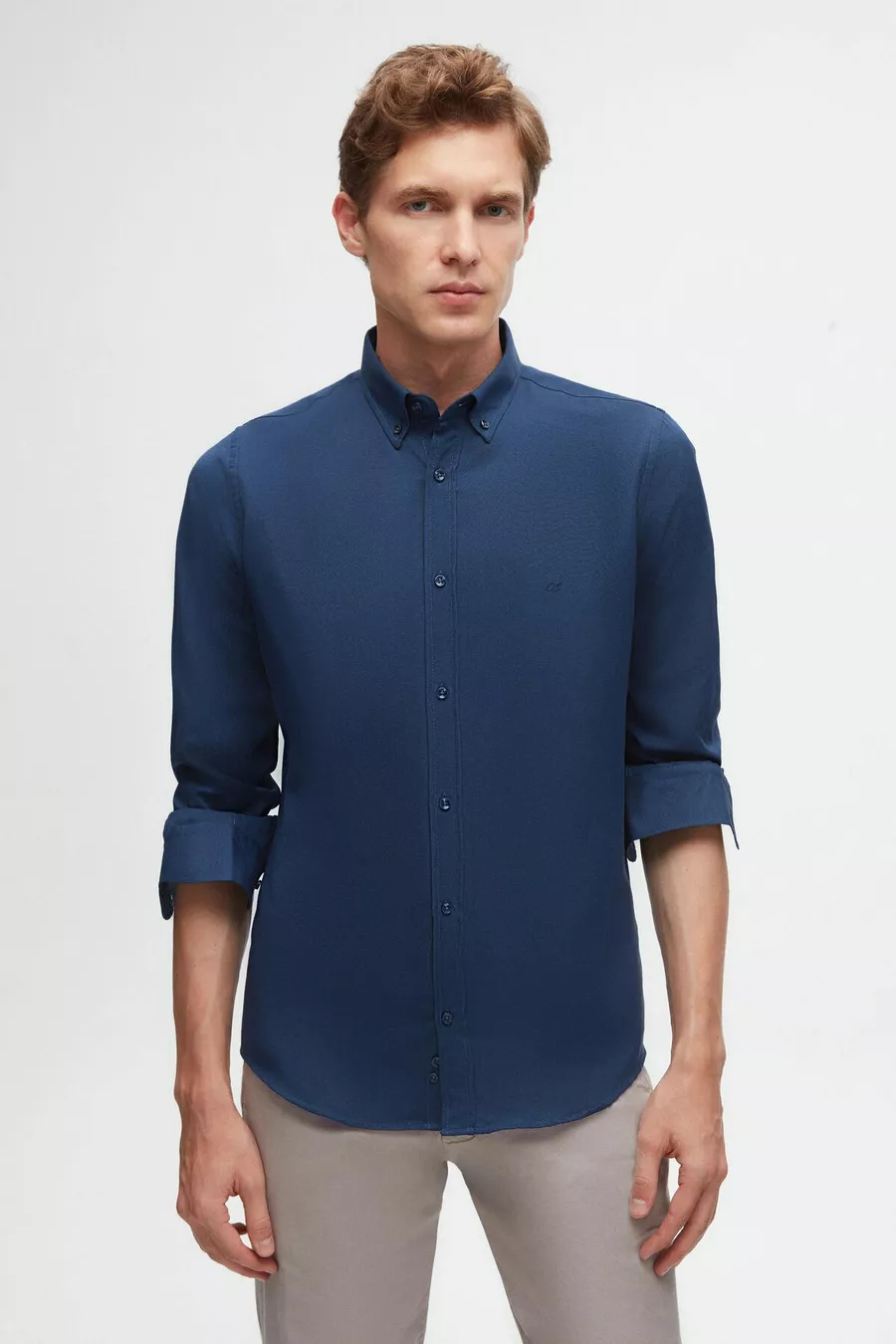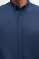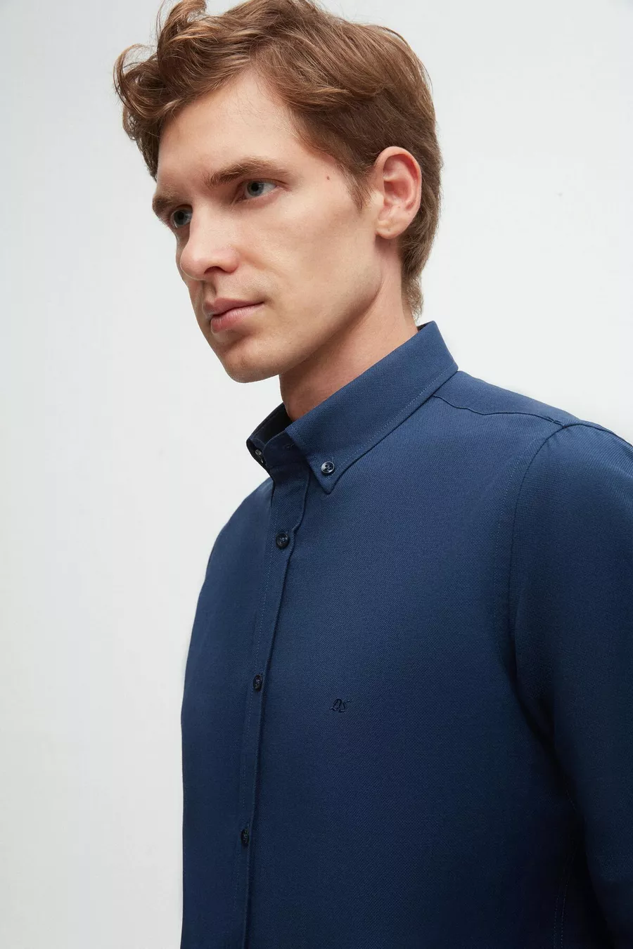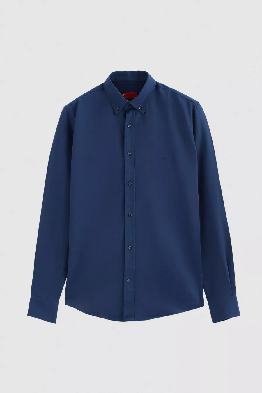 Camicia in cotone Ds Damat Slim Fit Indigo Oxford con colletto a bottoni, facile da stirare e dettagli ricamati