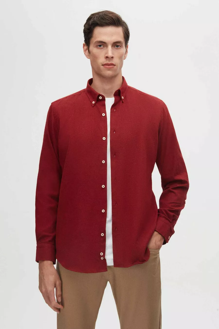 Camicia in flanella invernale regular fit rossa unita