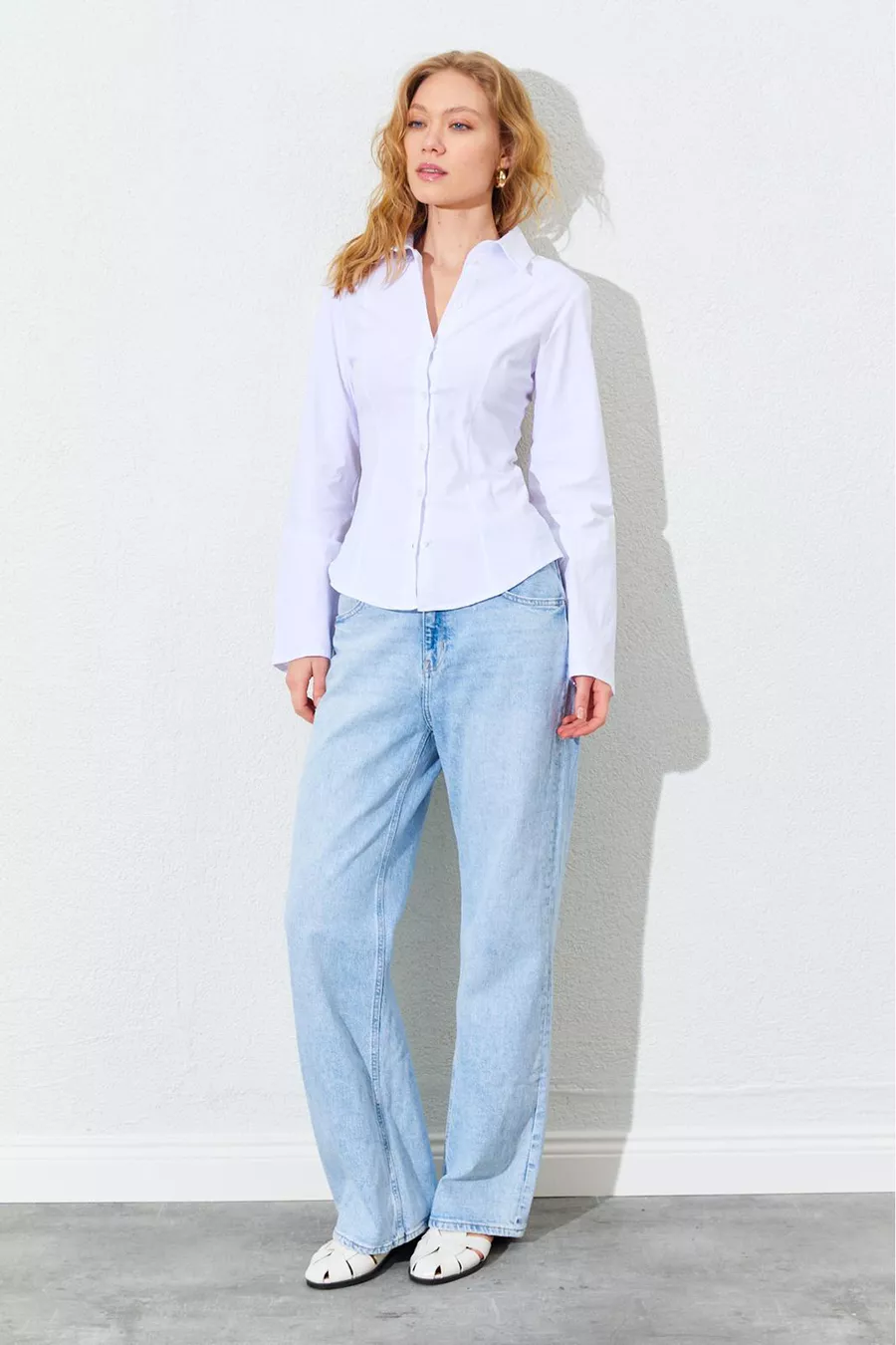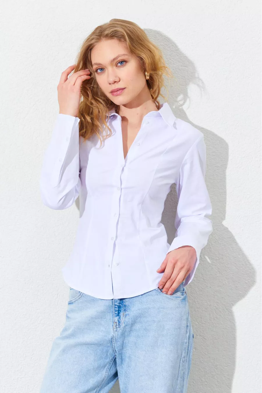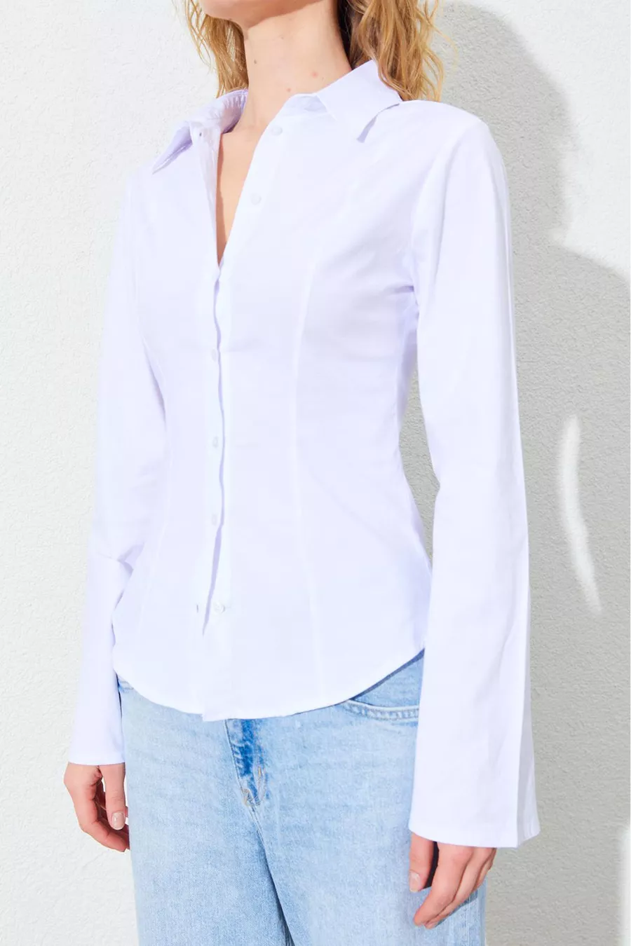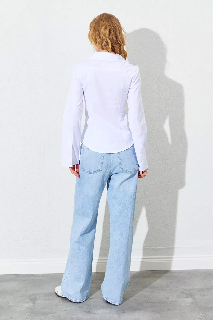 Camicia in Cotone Elastico Spagnola a Vita Alta - Bianco |