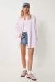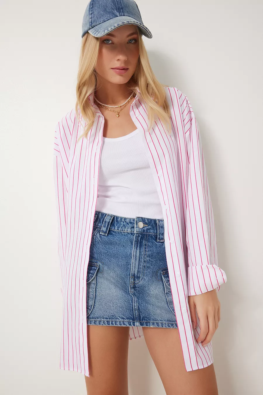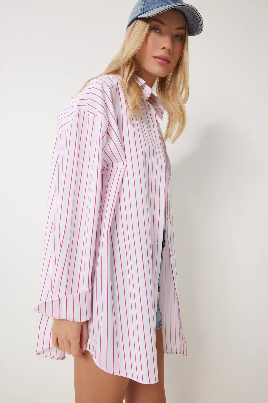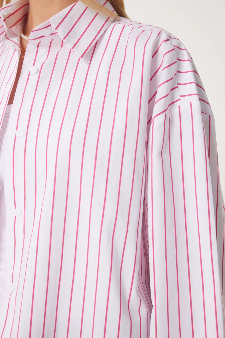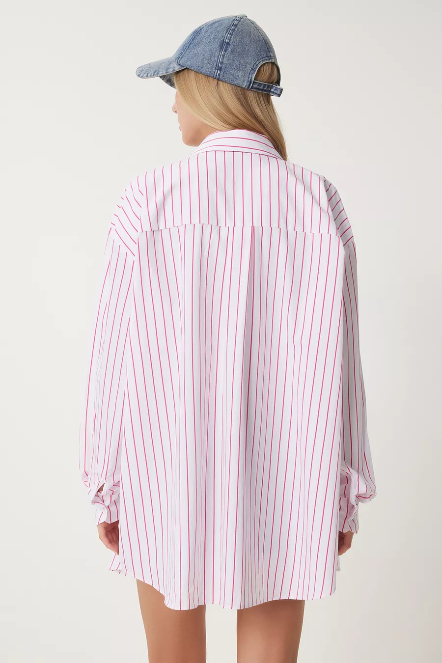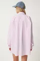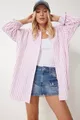 Camicia Lunga Oversize da Donna a Righe Bianche e Rosa