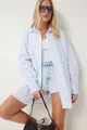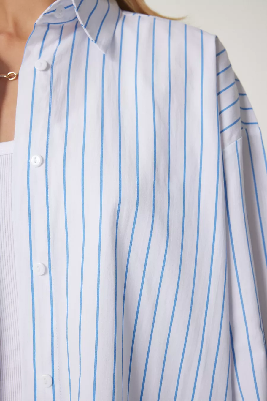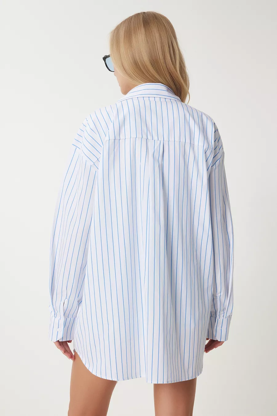 Camicia Lunga Oversize da Donna a Righe Bianche e Blu