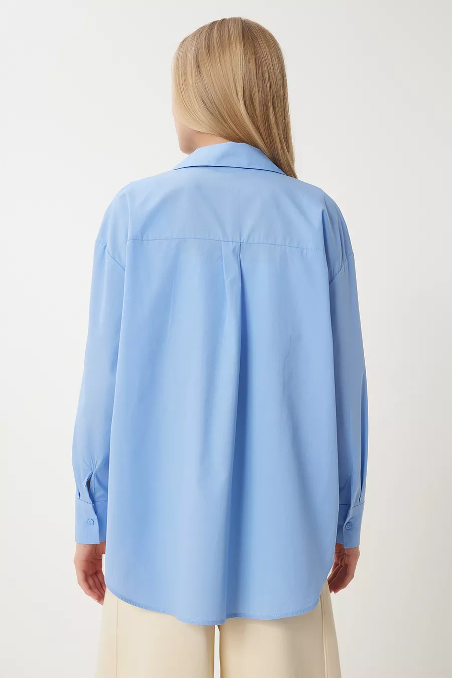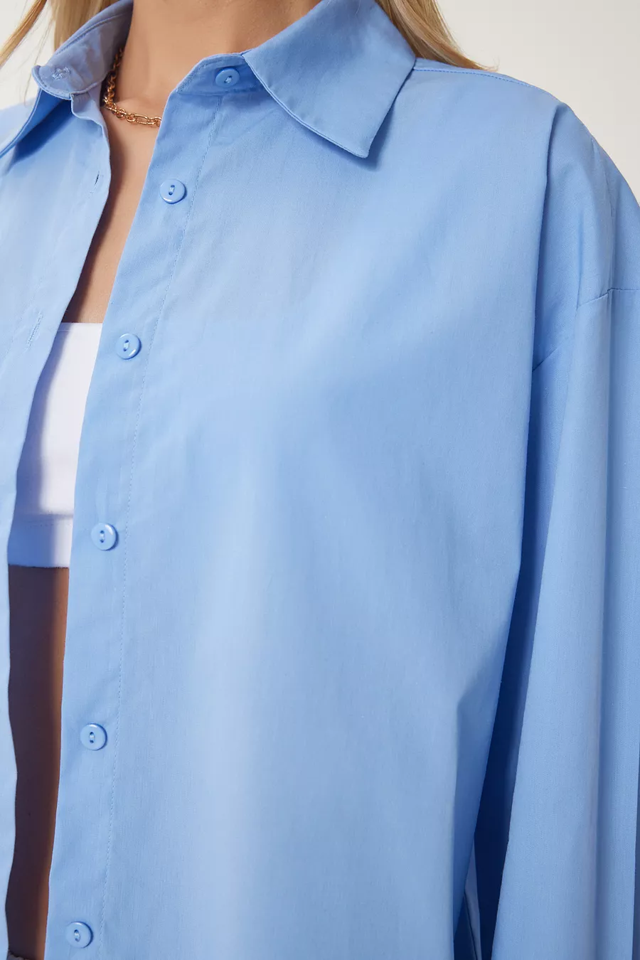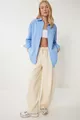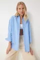 Camicia lunga oversize da donna in cotone blu