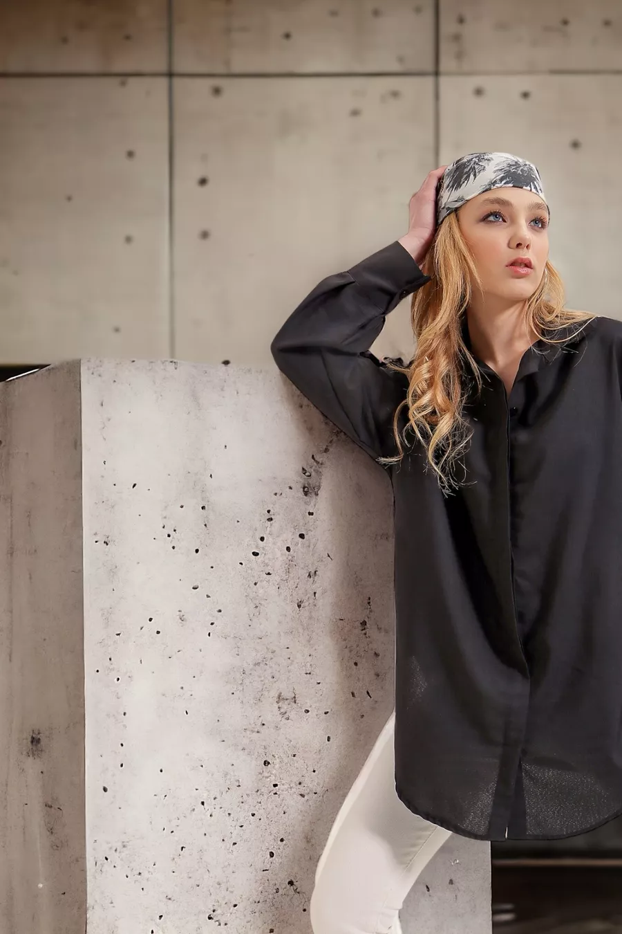 Camicia Lunga Donna Oversize Basic Nera