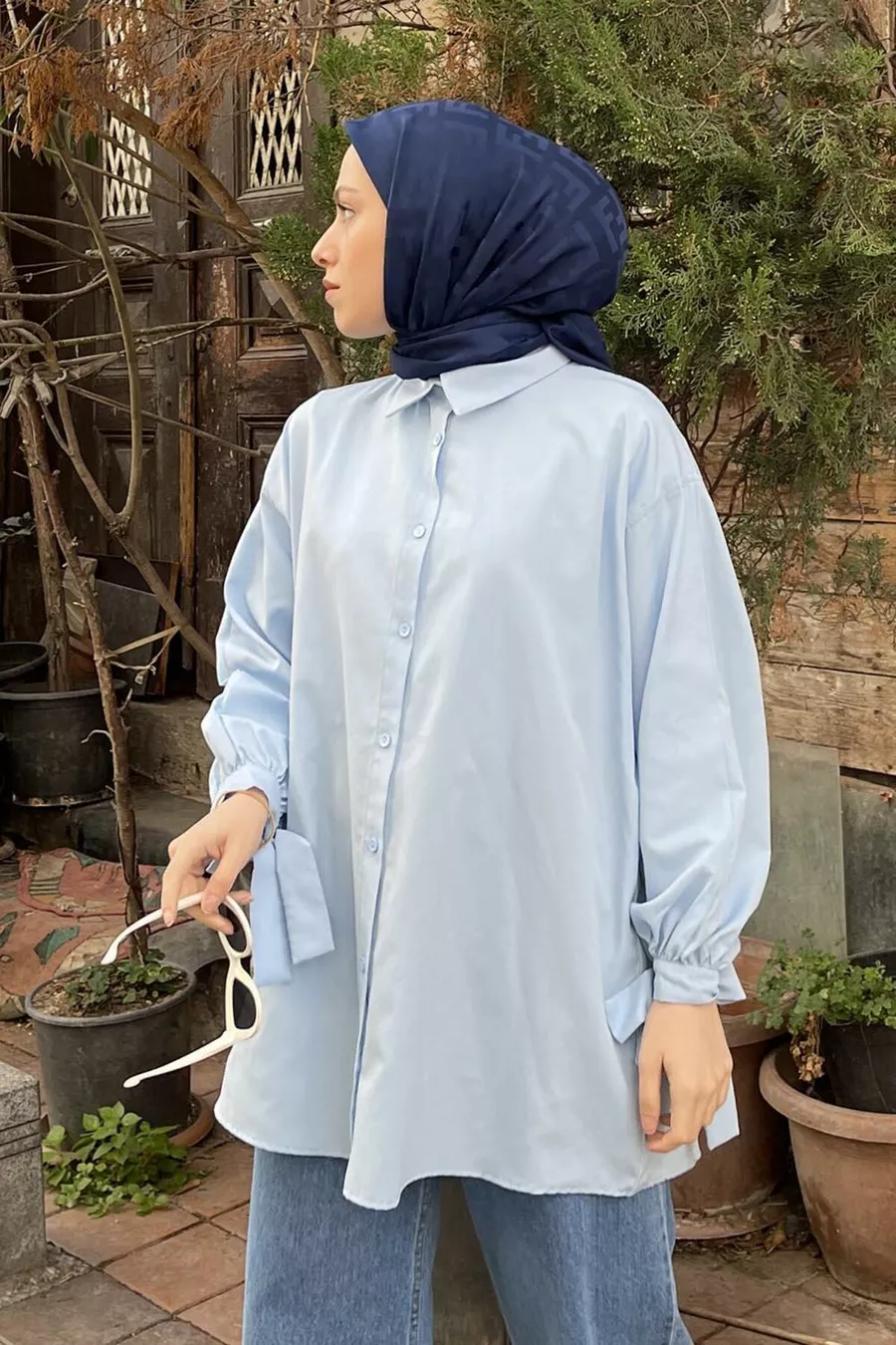 Camicia Oversize con Dettagli sulle Maniche Azzurro Bebè