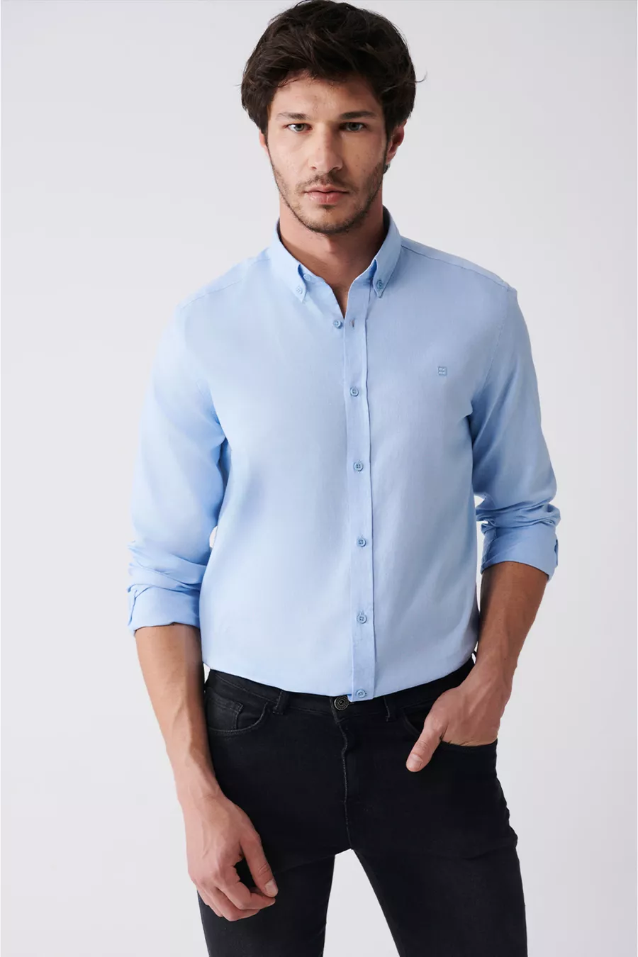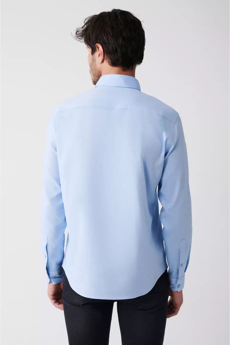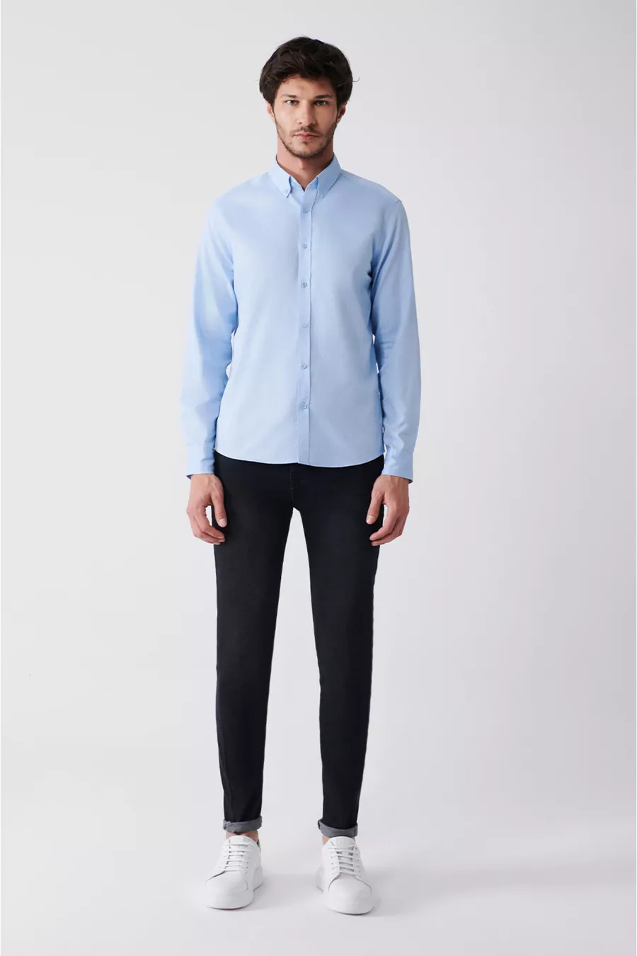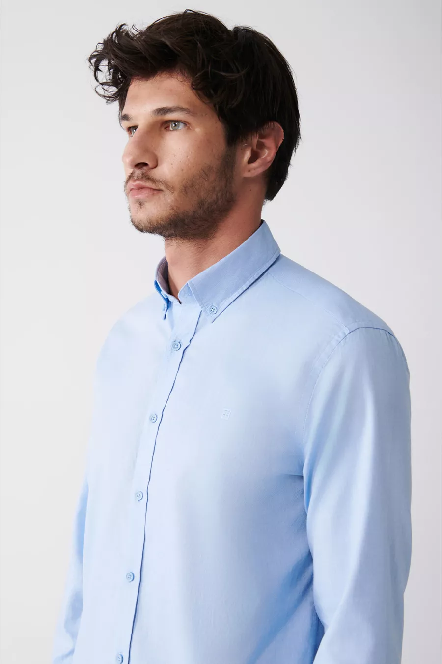 Camicia Oxford Uomo Azzurro Chiaro % Cotone Collo Button-Down Regular Fit