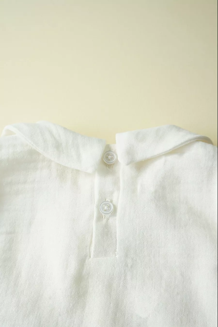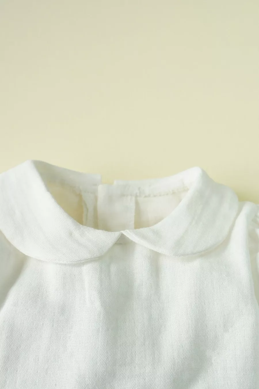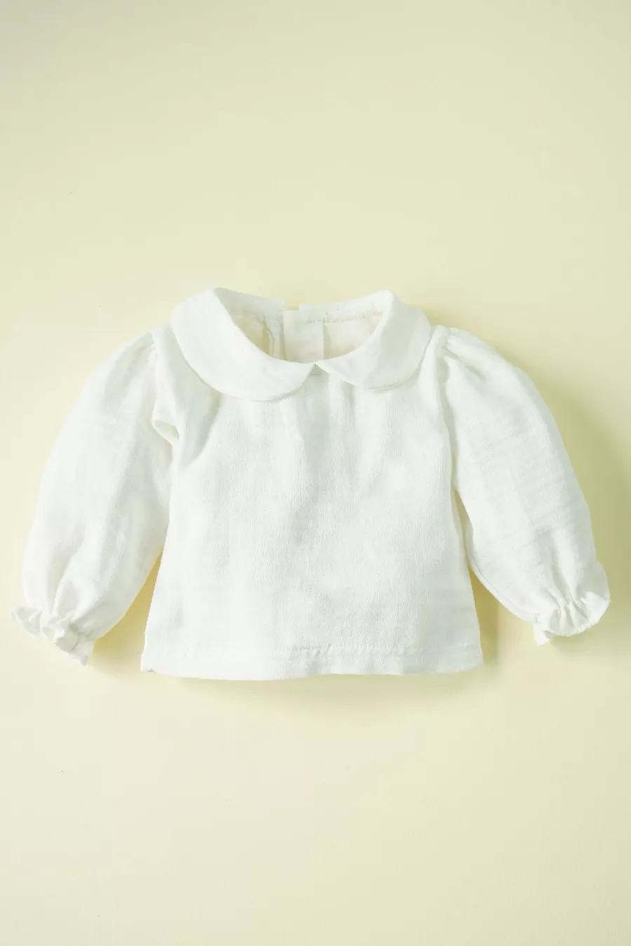 Camicia per bambina con collo a volant, maniche lunghe e mussola