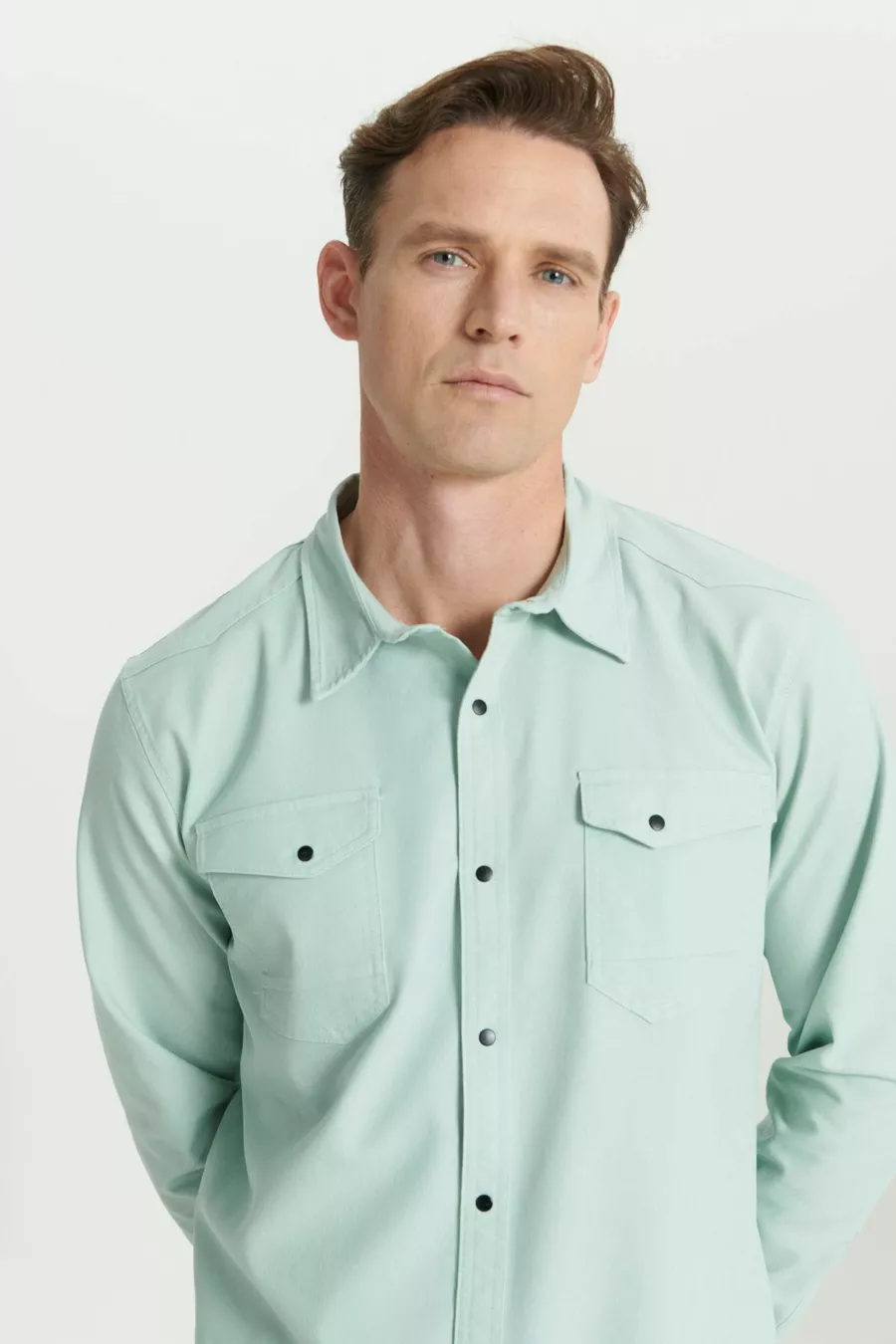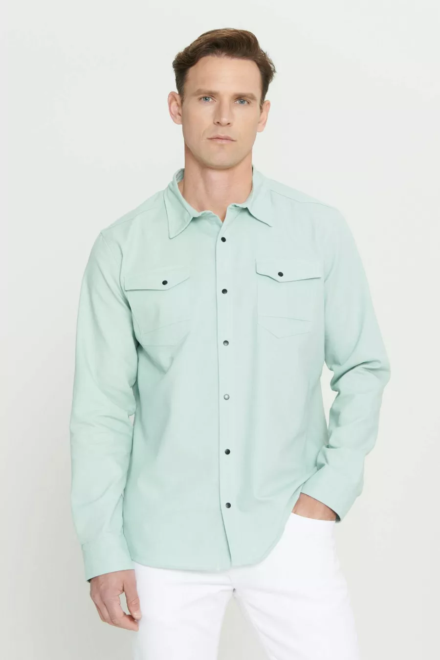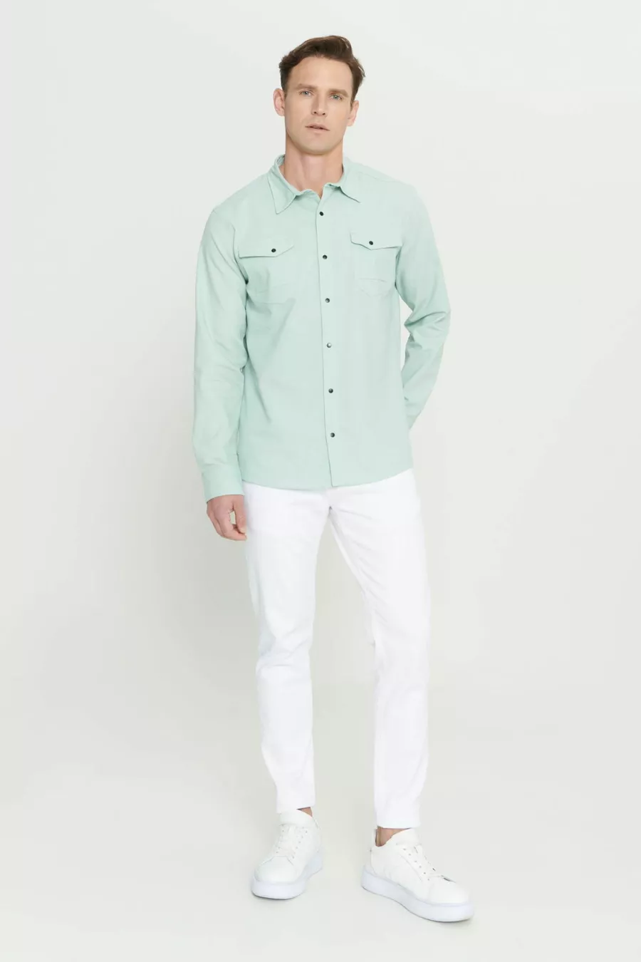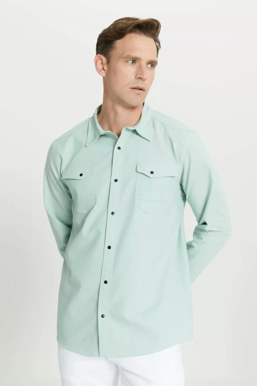 Camicia Uomo Verde Acqua Slim Fit Taglio Stretto Collo Classico Cotone