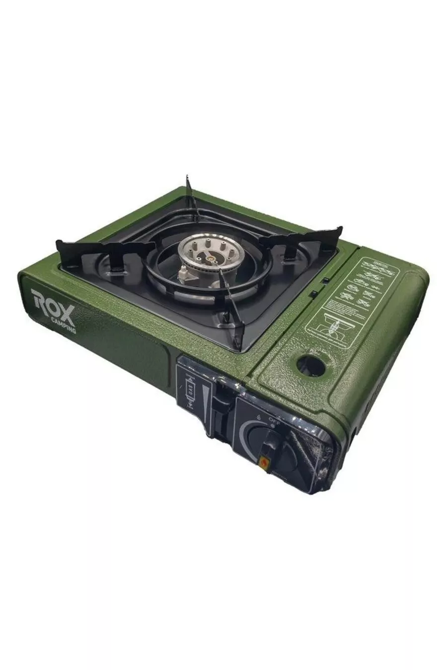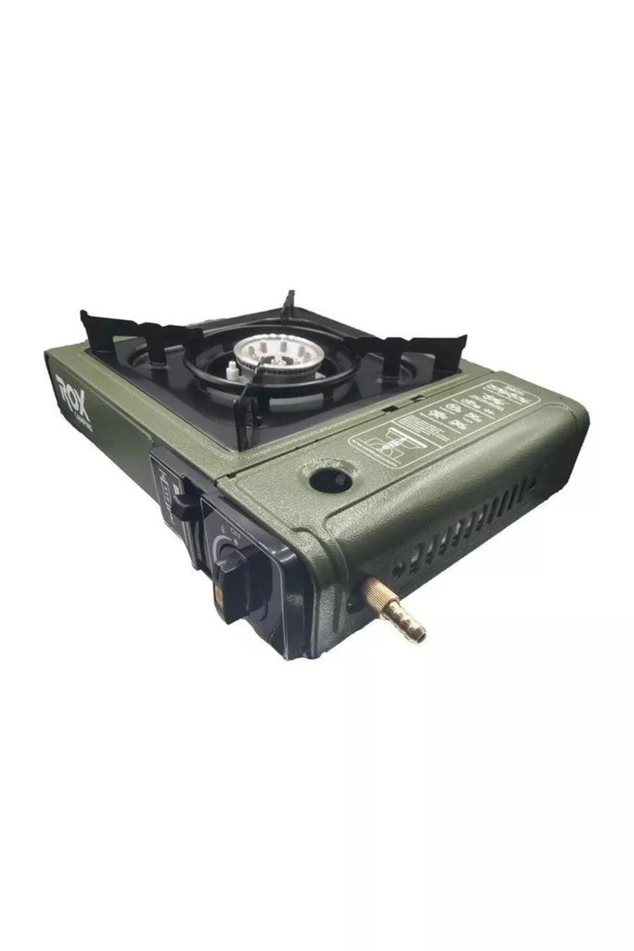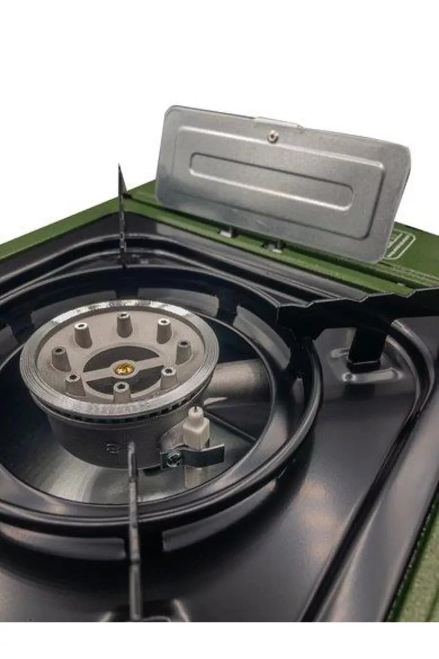Camping Fornello da Campeggio Portatile Singolo - Verde Militare, Con Paravento, Con Ingresso Gas Extra