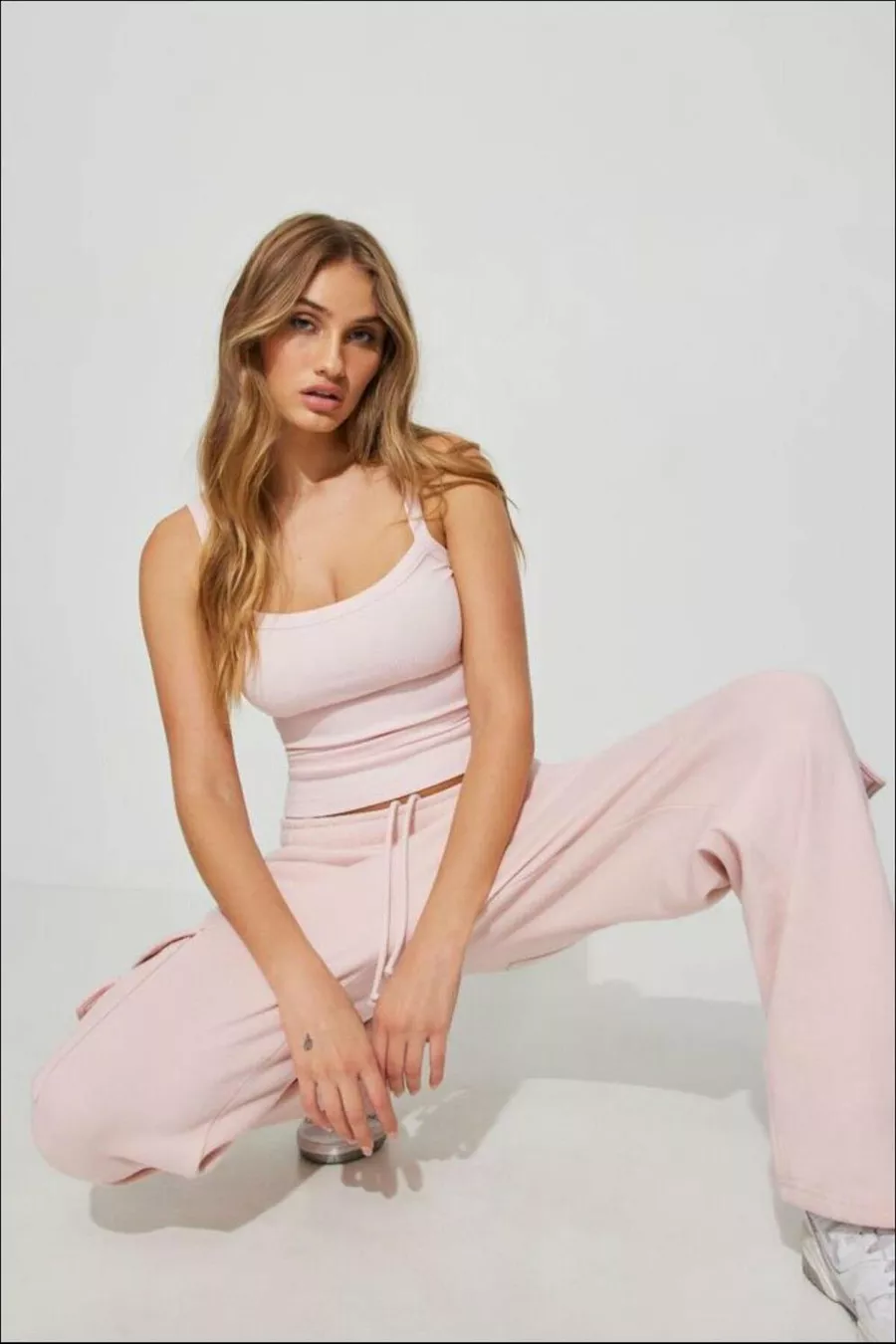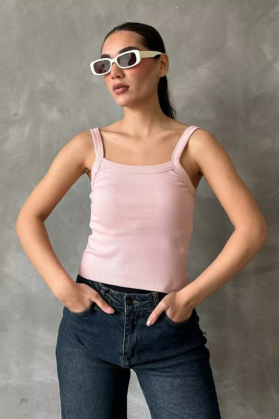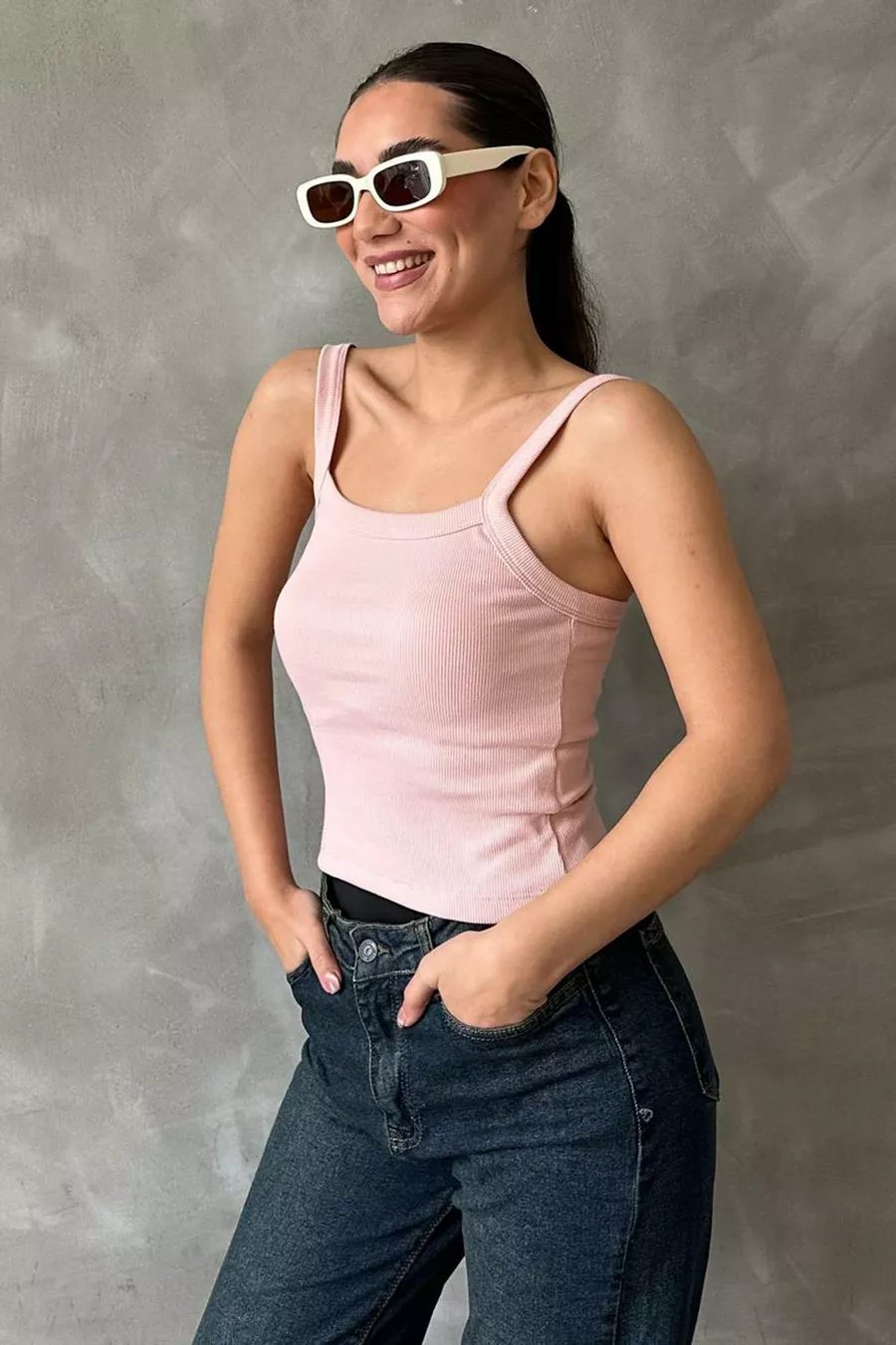 Canotta basic rosa a coste con spalline