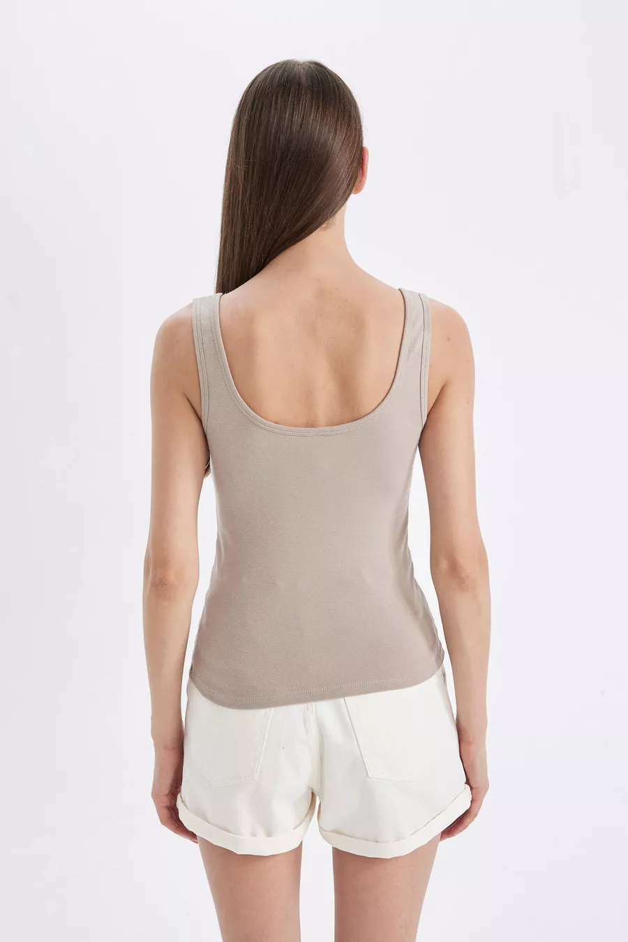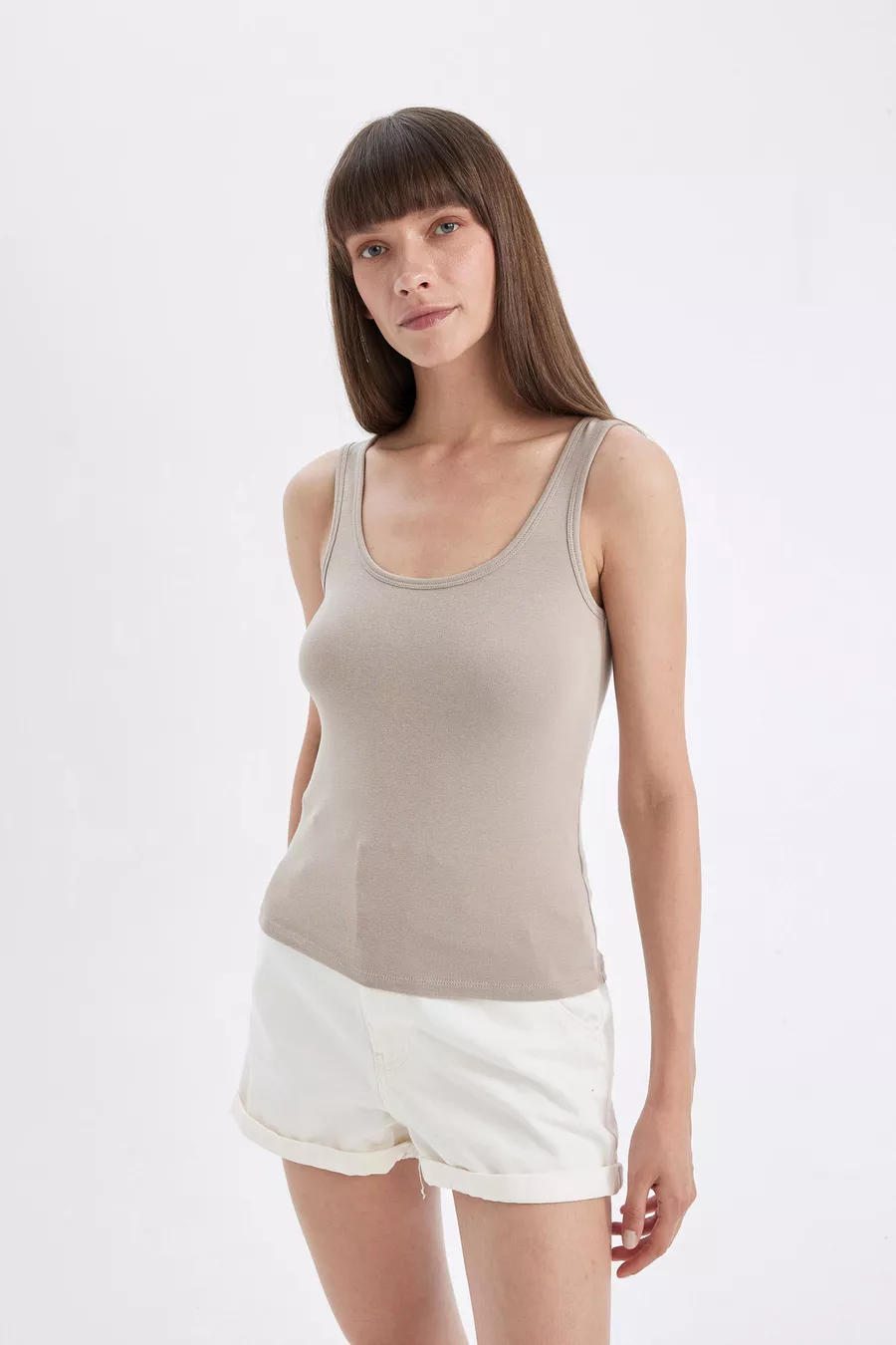 Canotta Basic a Taglio Slim con Scollo a U in Tessuto Costina sm