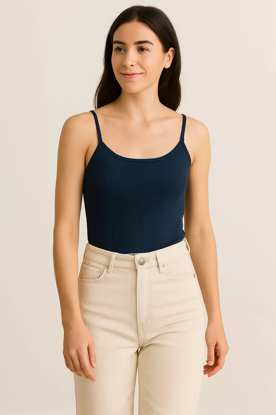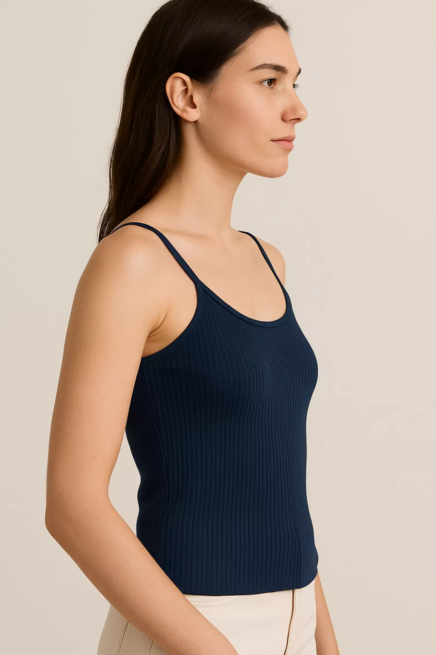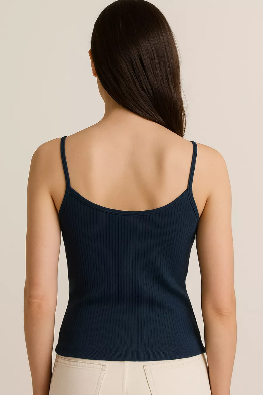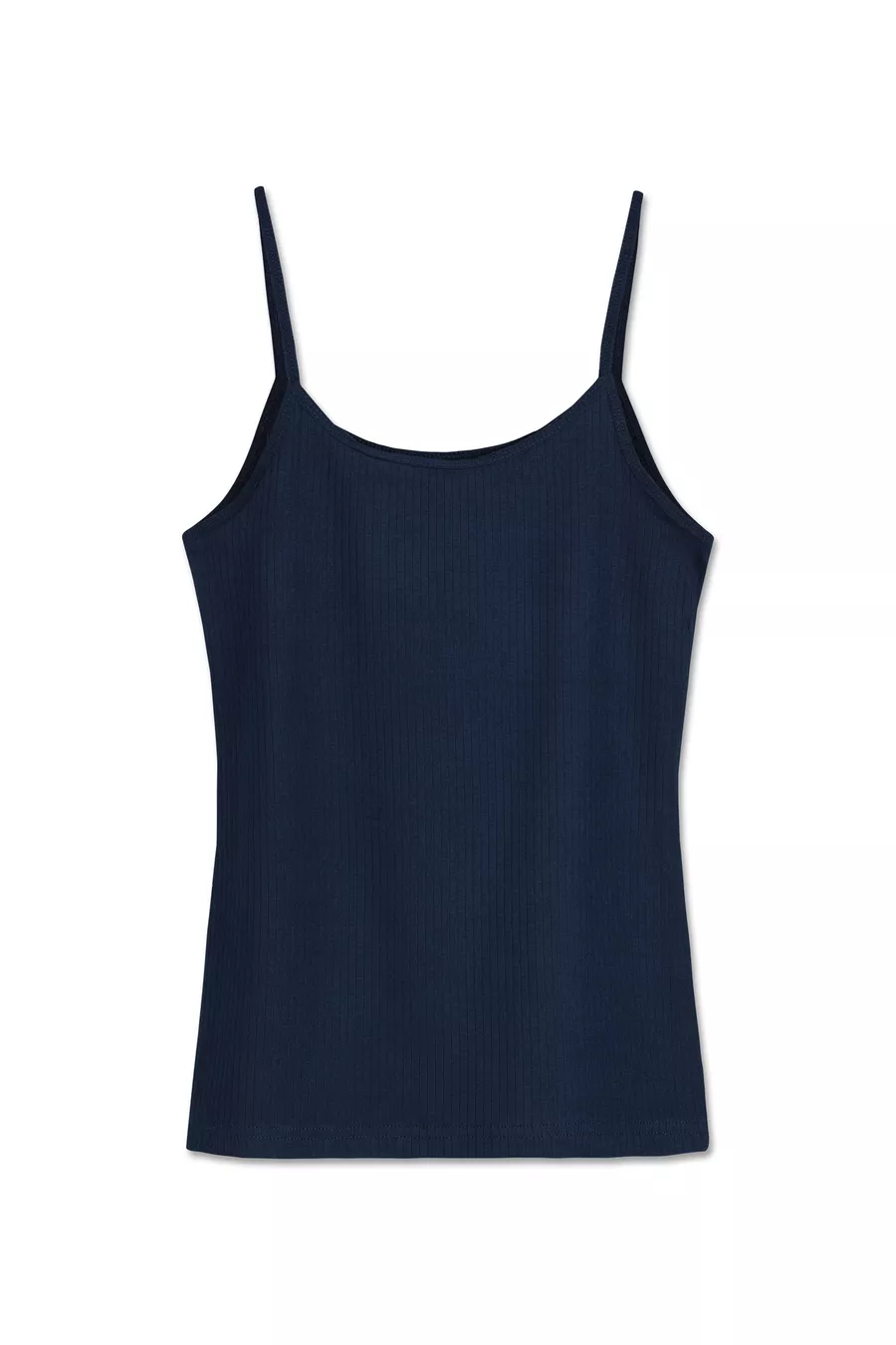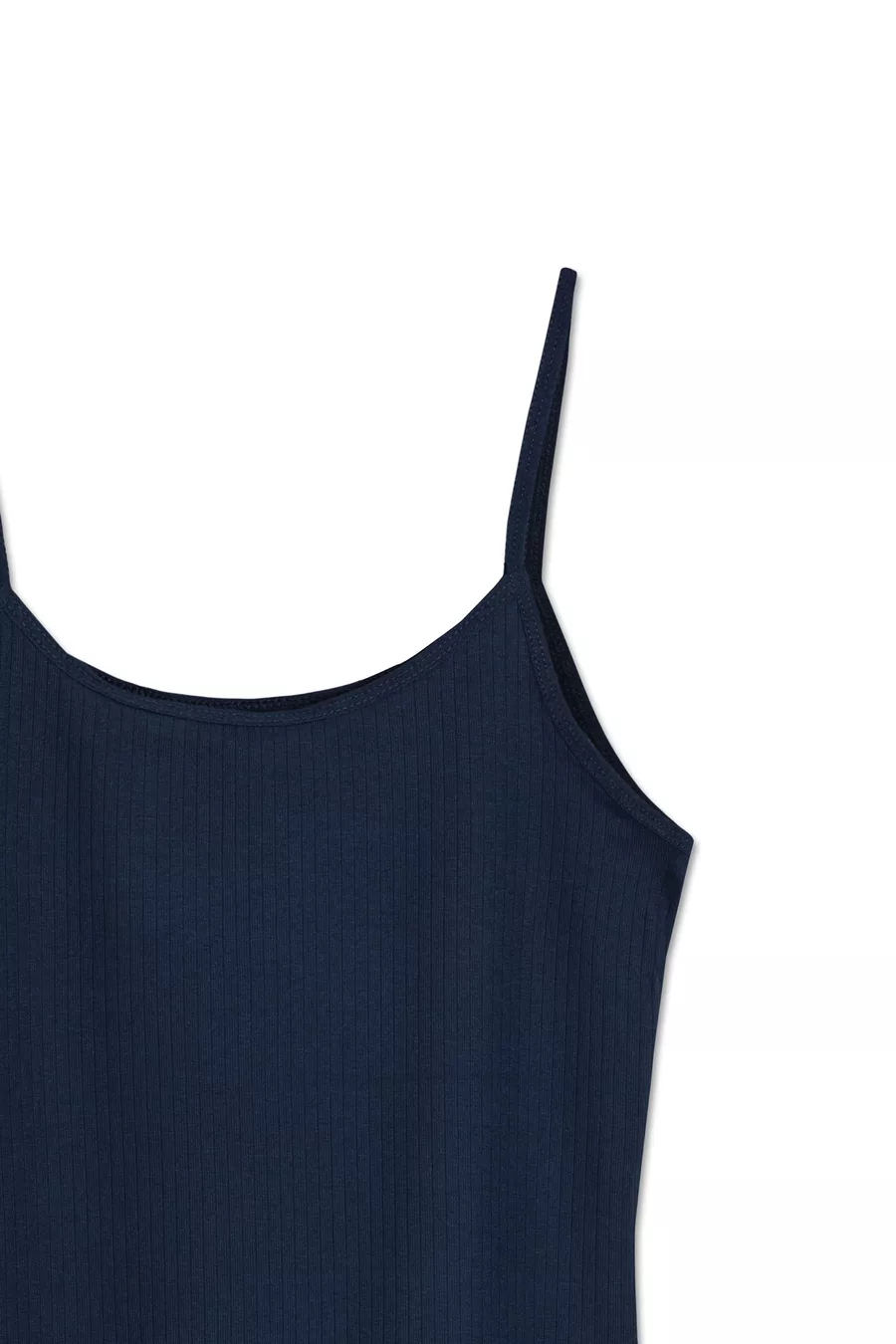 Canotta da donna a coste in cotone sottile con spalline | Blu scuro
