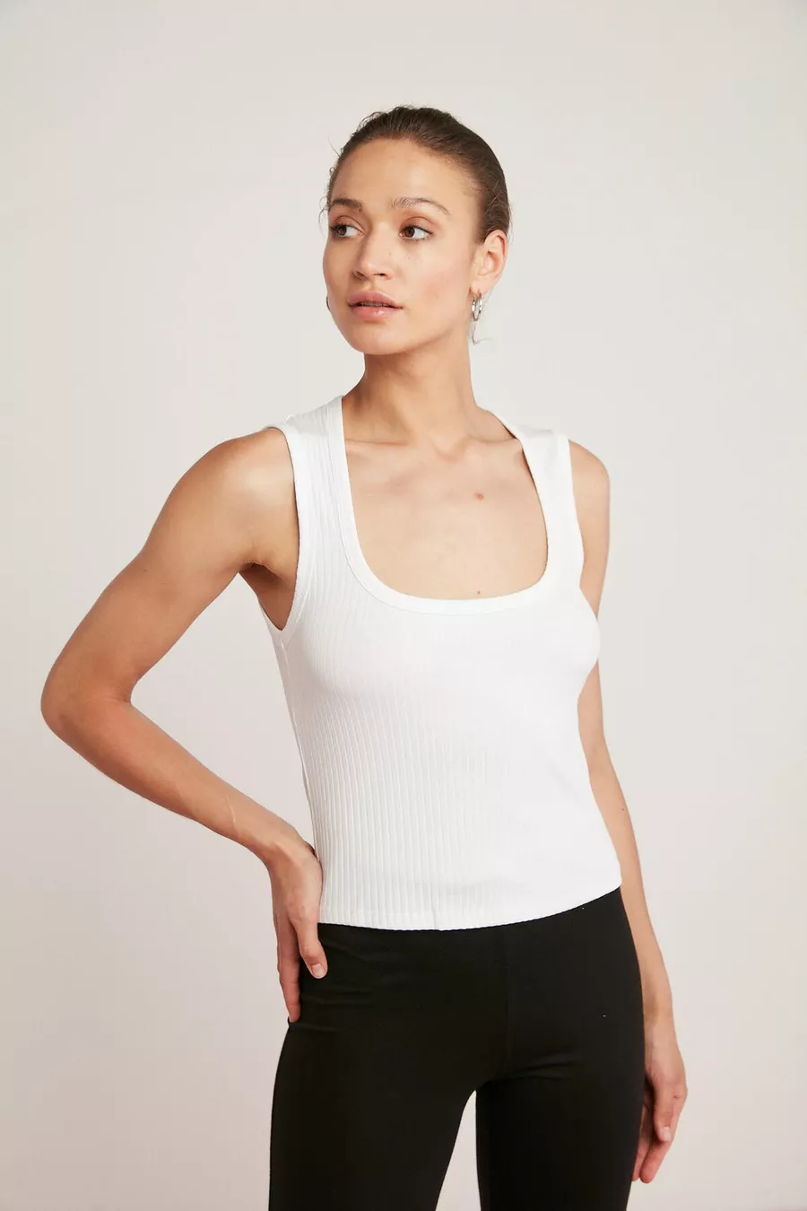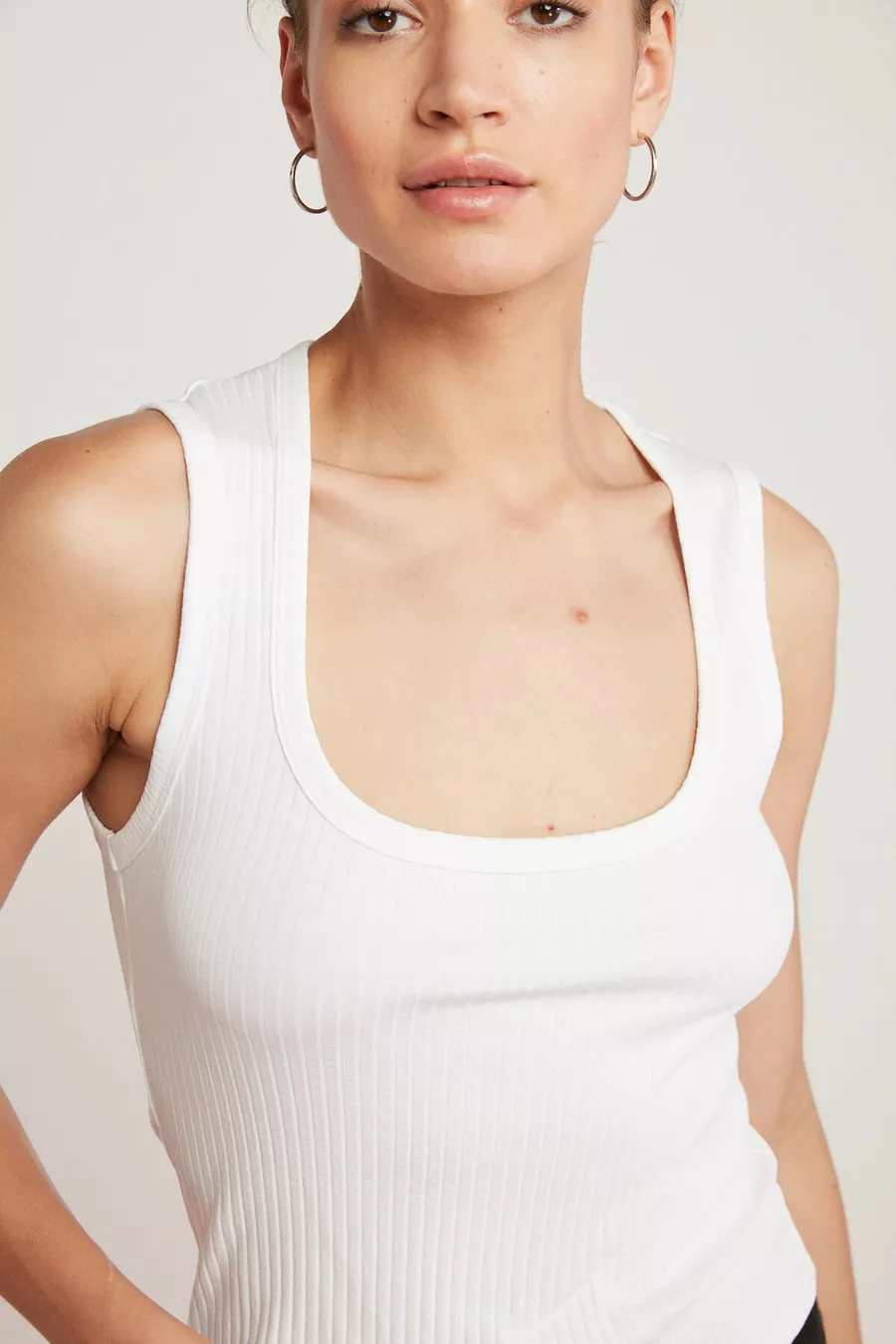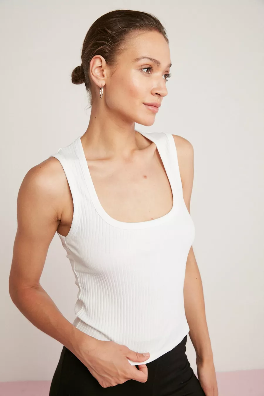 Canotta da donna Bıana in cotone % a coste, aderente al corpo, spalline larghe e scollo rotondo, bianca