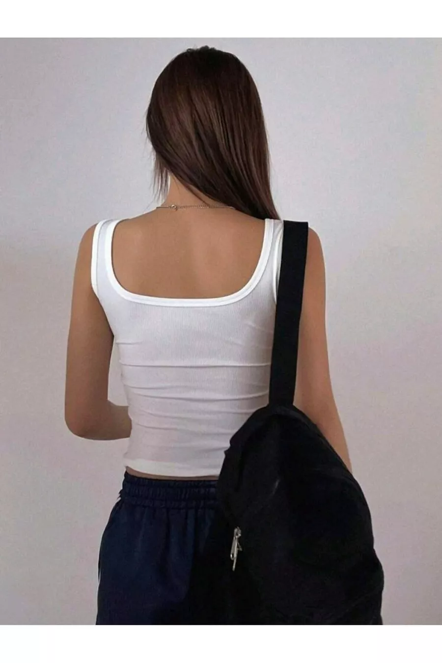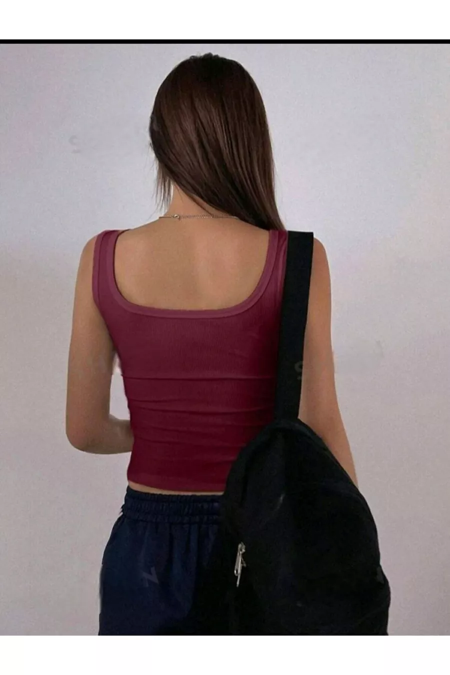Canotta donna nera 4 pezzi in costina, scollo quadrato, spalline larghe, top corto aderente, canotta sportiva in costina