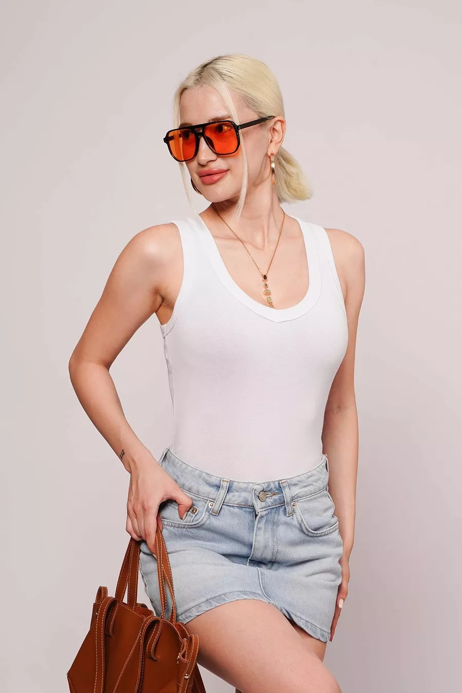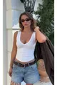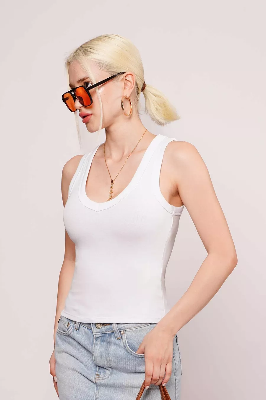 Canotta Donna Basic Bianca a Scollo Profondo a V in % Cotone