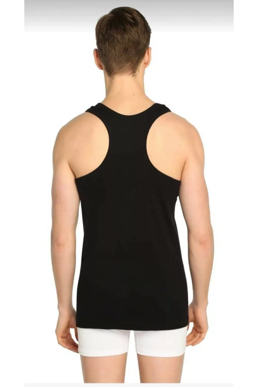 Canotta sportiva da uomo nera in cotone a coste, confezione singola, 6 pezzi,