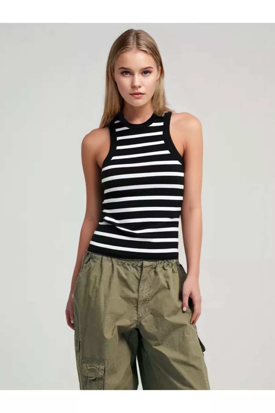 Canottiera a coste con collo Halter Novelle