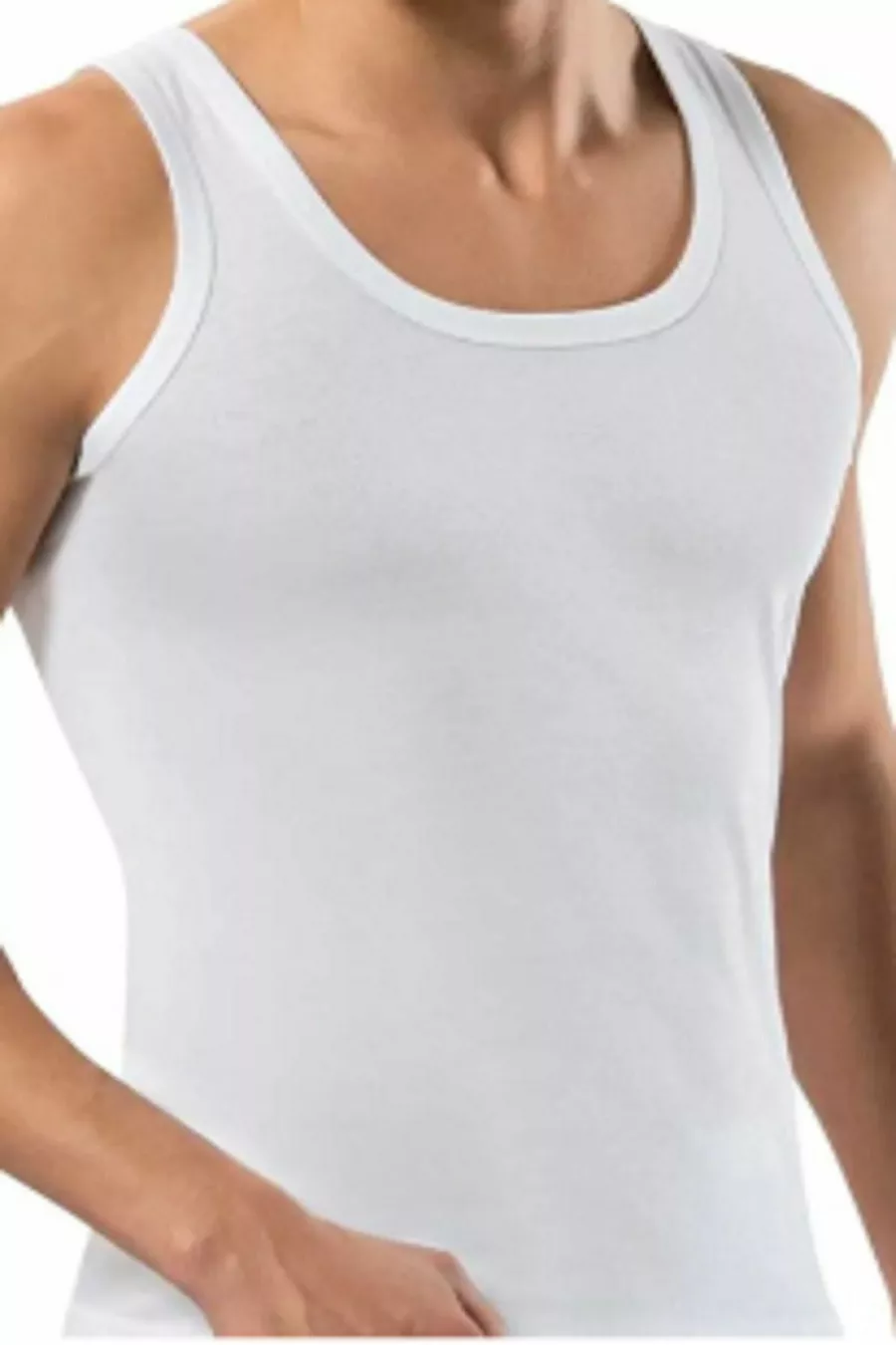 Canottiera da uomo in coste bianche % cotone, confezione da 3