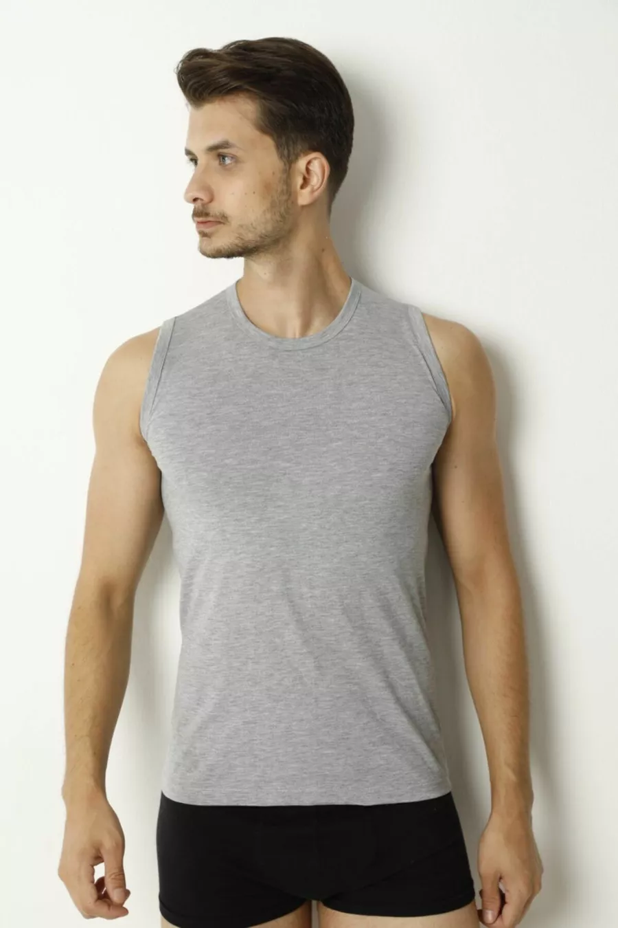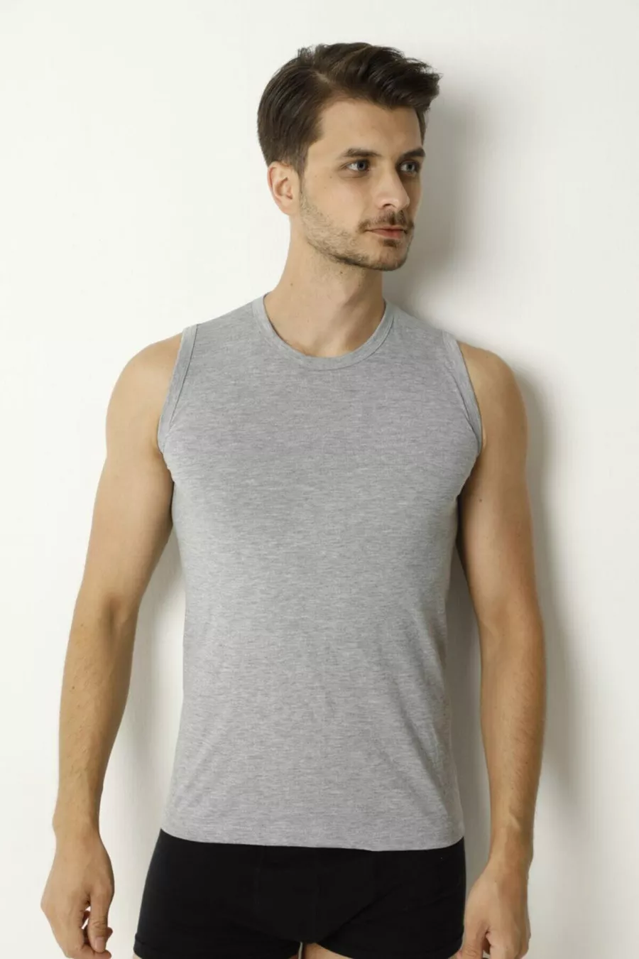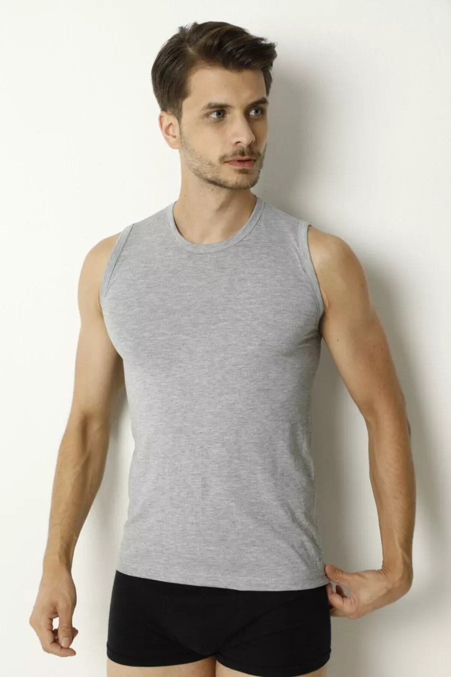 Canottiera da uomo senza maniche e senza collo Grigia % Cotone % Poliestere Cotone