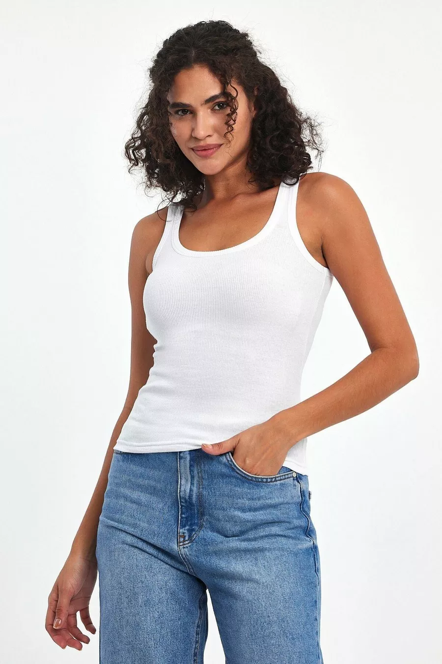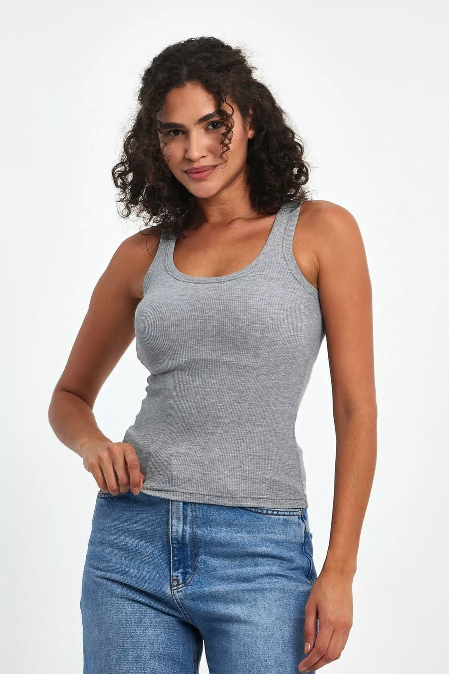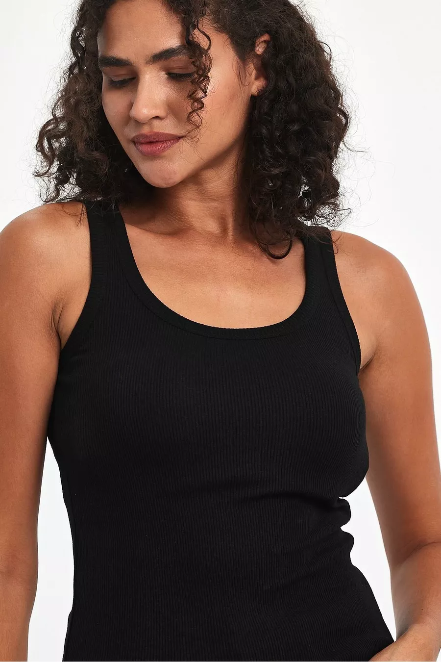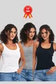 Canottiera da donna basic a tre pezzi, con spalline, in nero-bianco-grigio, effetto a coste, spessa