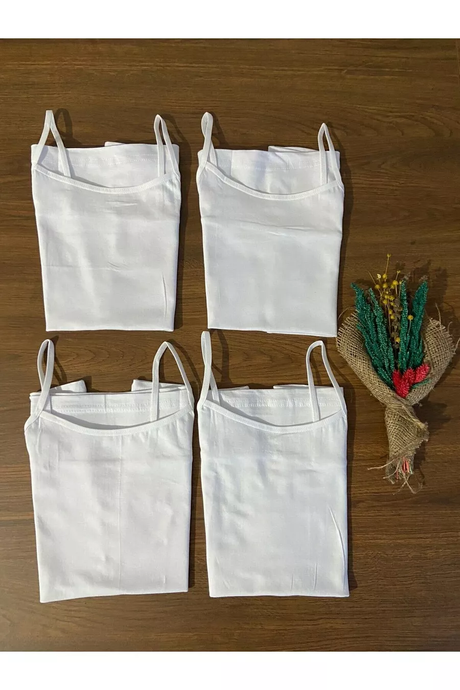 Canottiera Donna in Cotone Elasticizzato con Spalline Sottili, Pacco da 4, Bianca