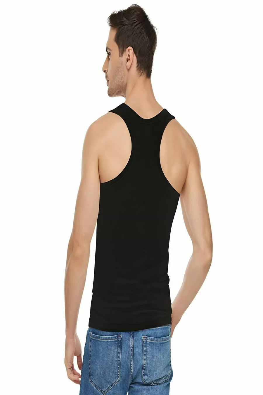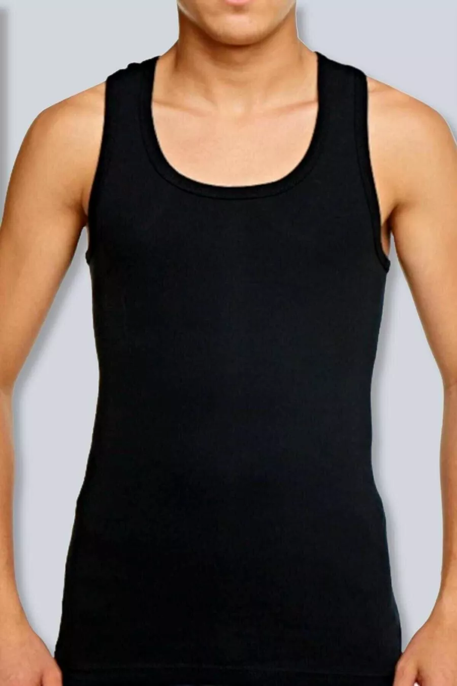 Canottiera maschile nera in cotone a costine, confezione da 6