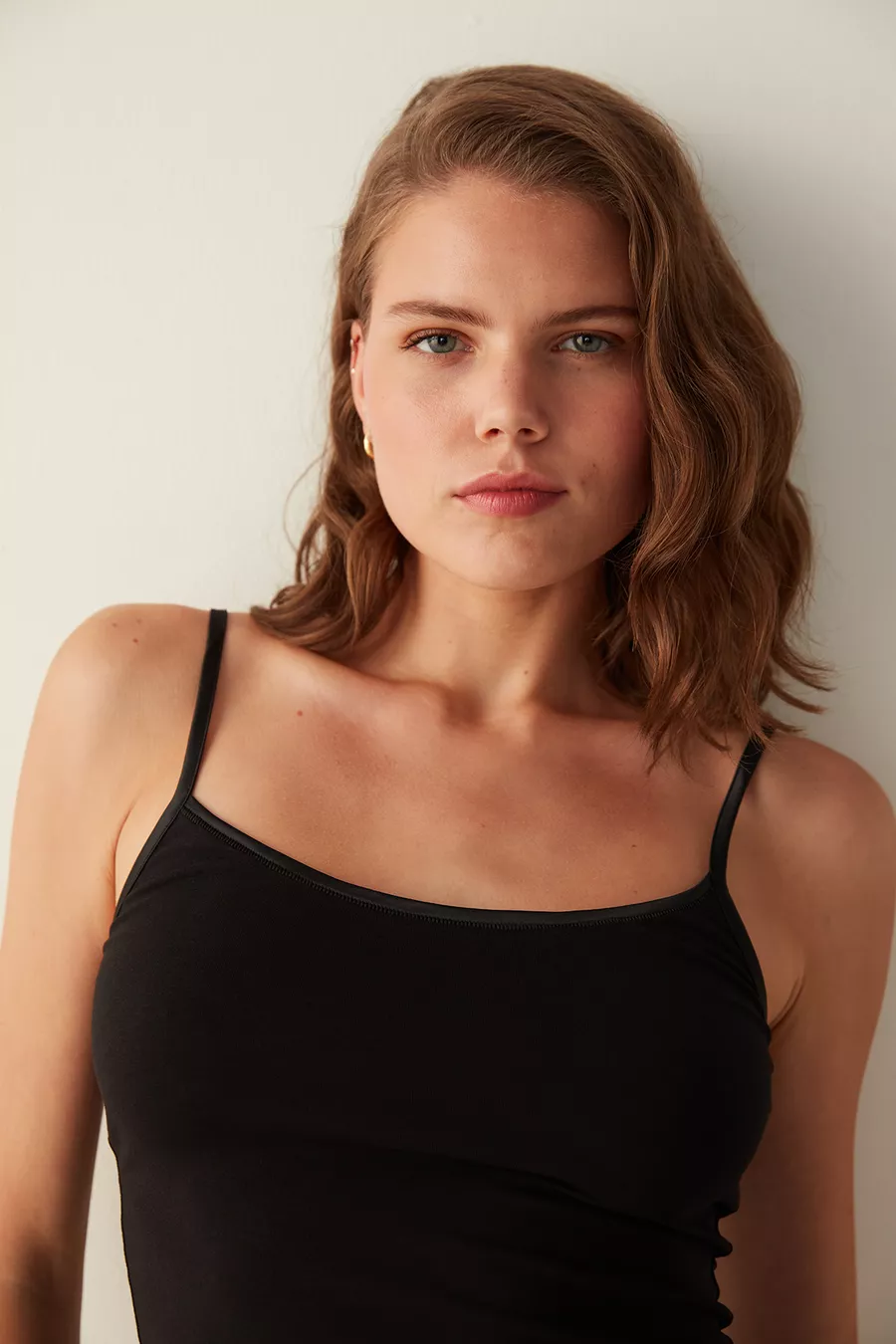 Canottiera nera in cotone sottile con spalline