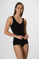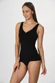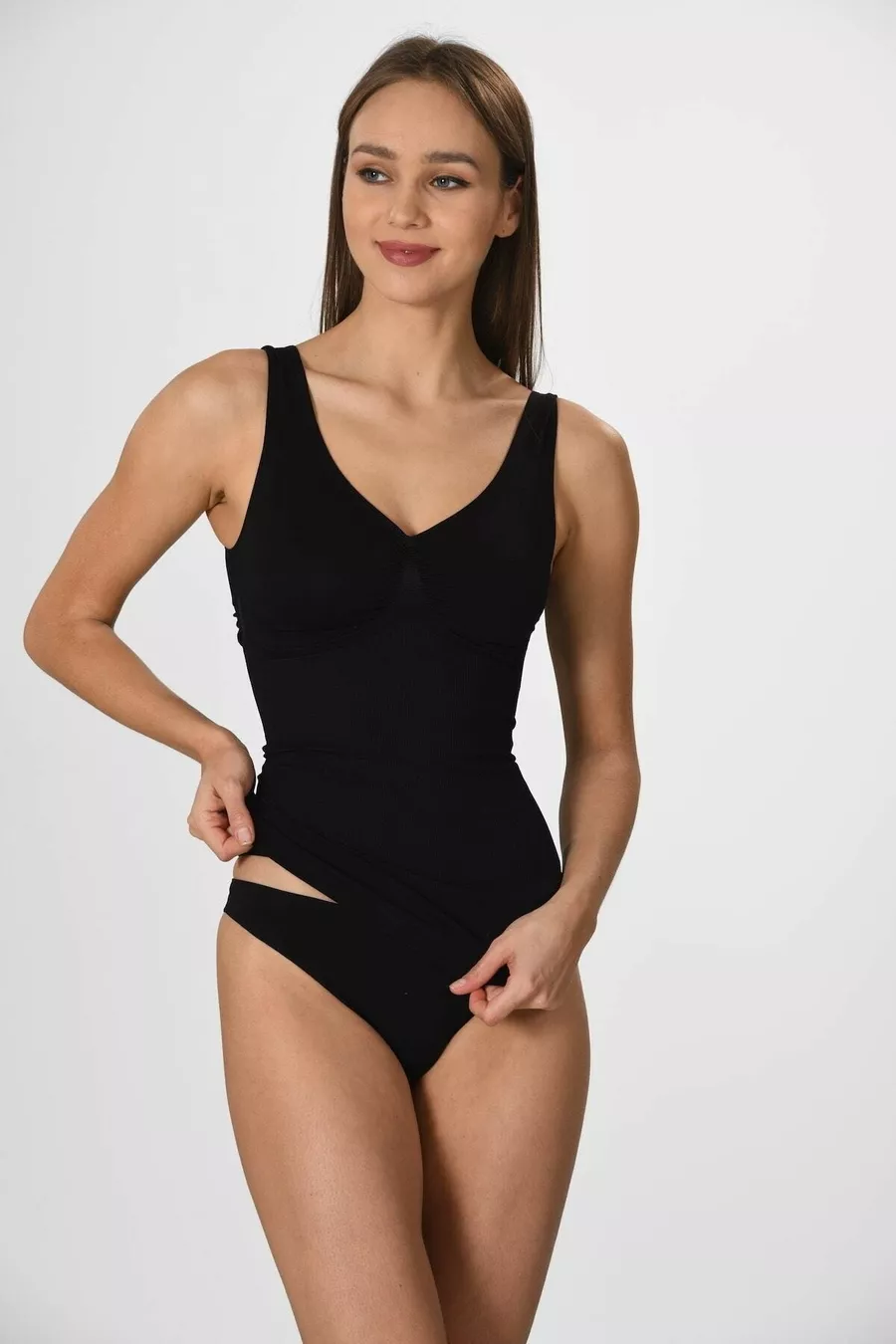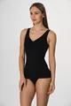 Canottiera modellante senza cuciture da donna nera con scollo a V e corsetto in maglia
