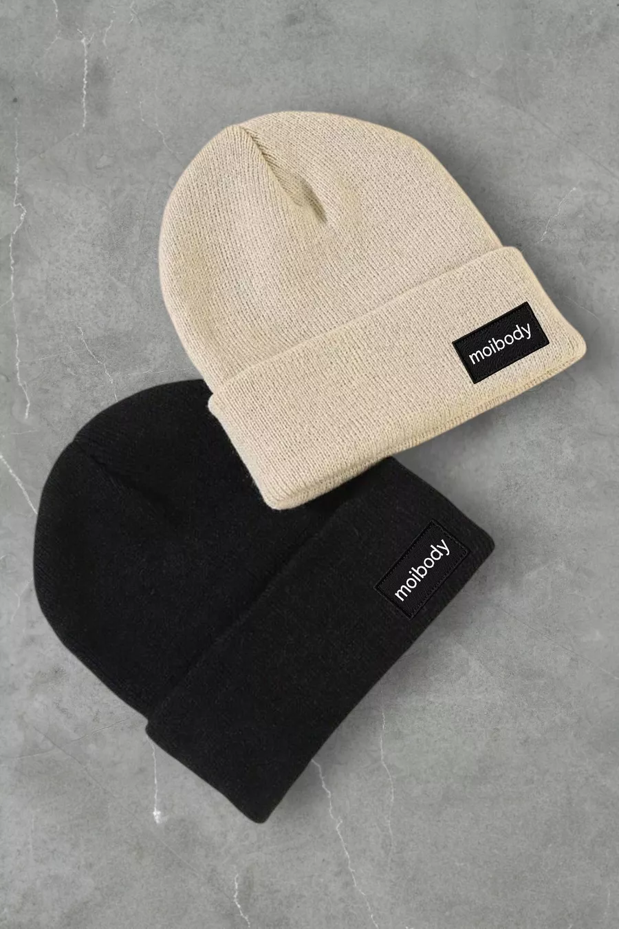 Cappello Basic Premium 2 pezzi % Acrilico Nero e Beige