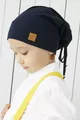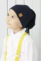 Cappello, berretto e scaldacollo da bambino maschio blu scuro con dettagli a corda per tutte le stagioni - morbido cotone naturale
