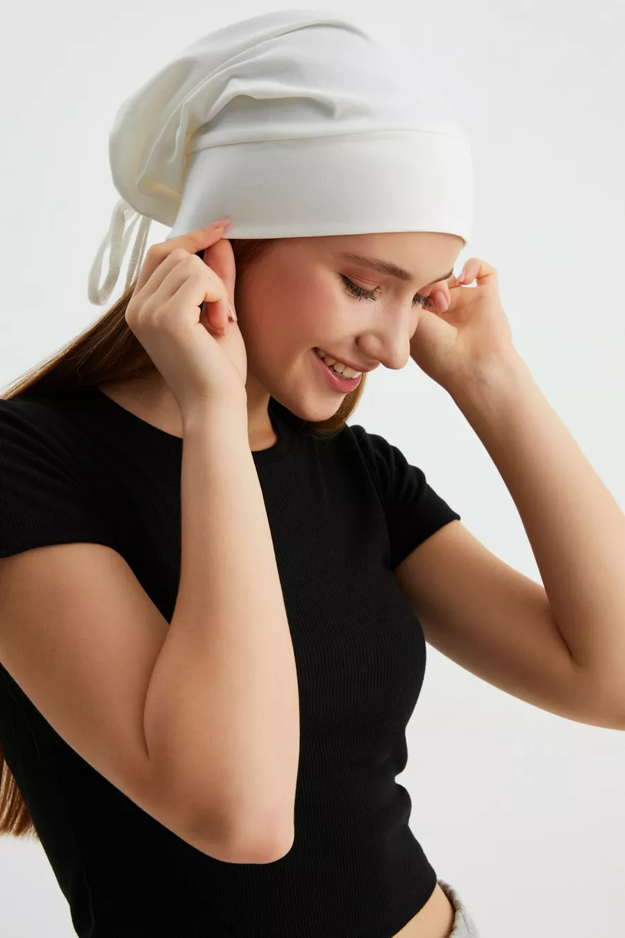 Cappello da donna in cotone per tutte le stagioni, elastico, ultra morbido, leggero, traspirante, con dettaglio a cordoncino