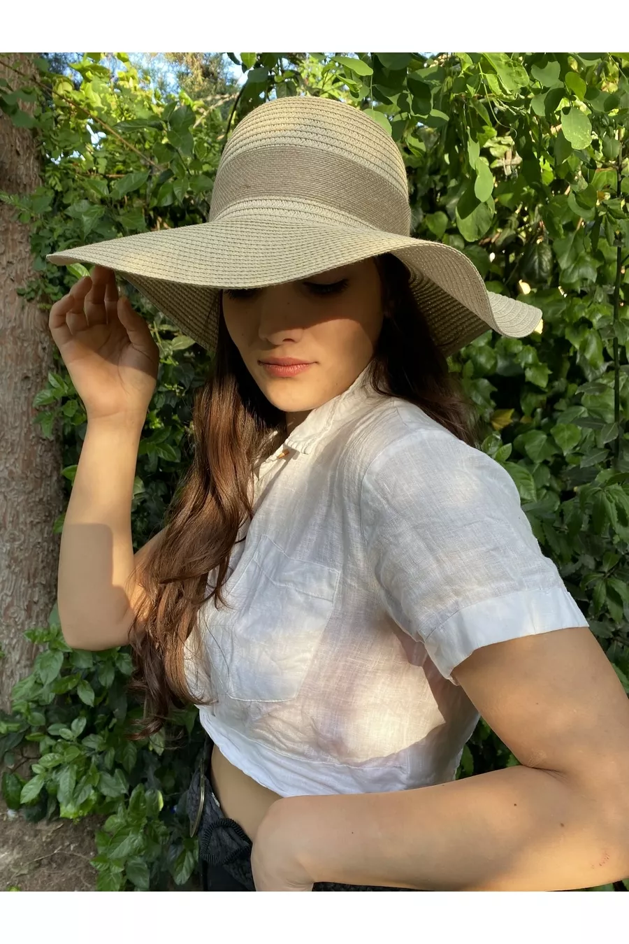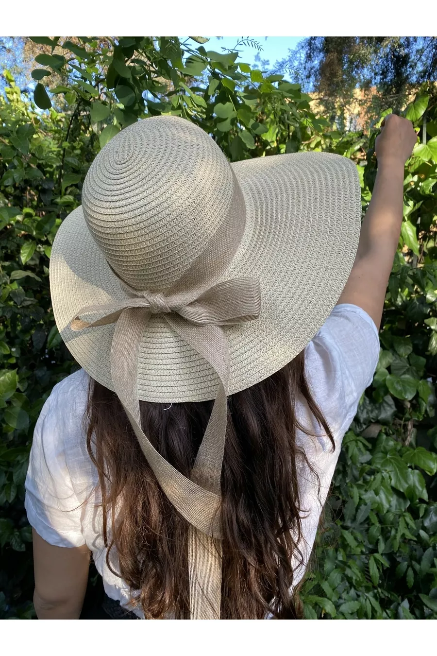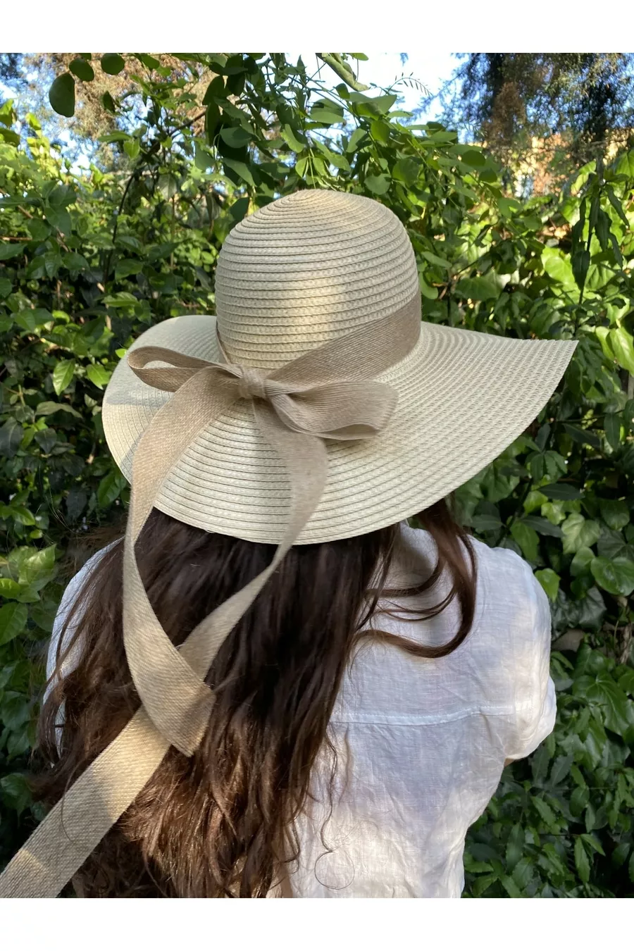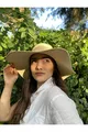 Cappello di paglia beige a campana con foulard