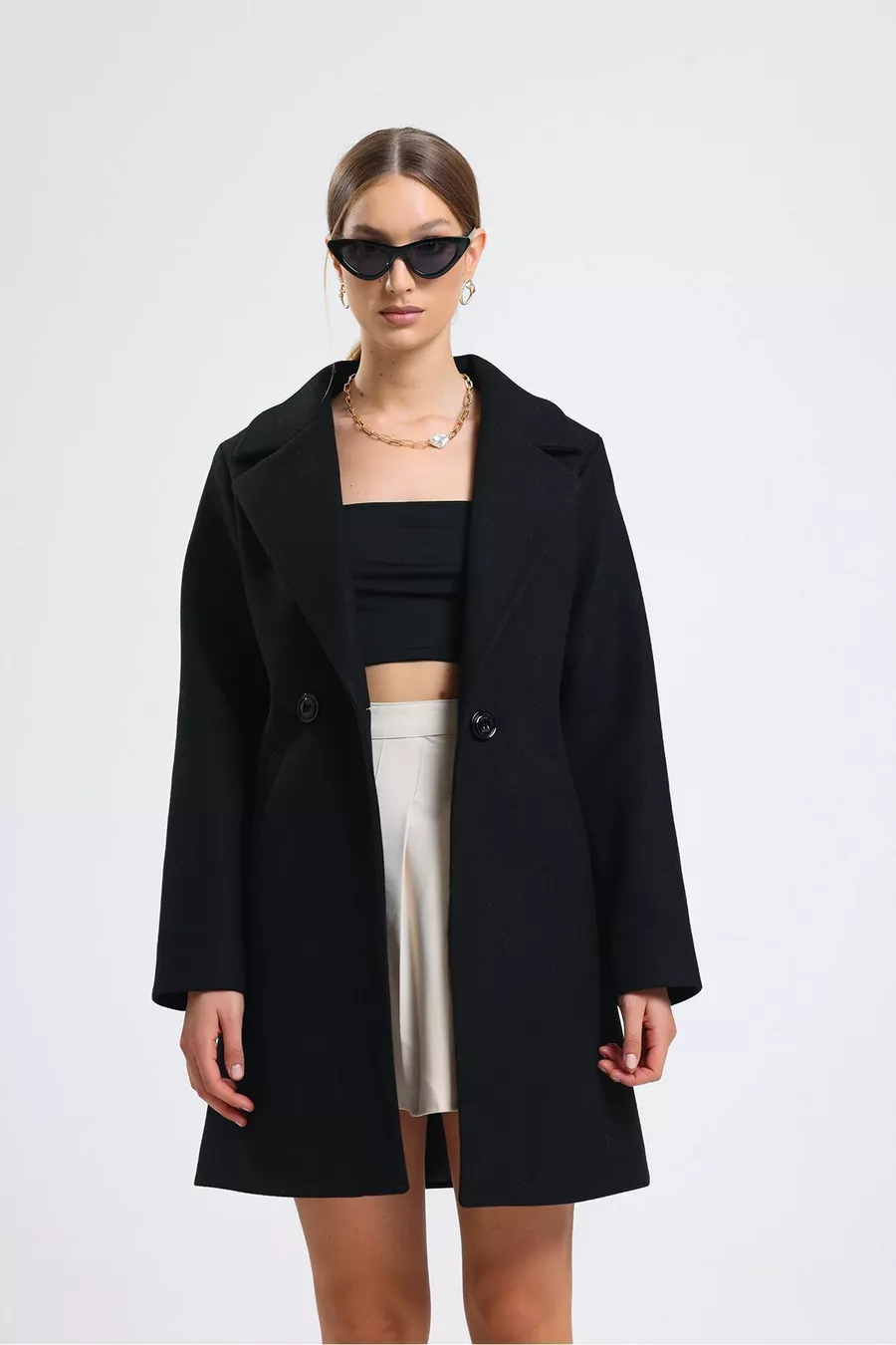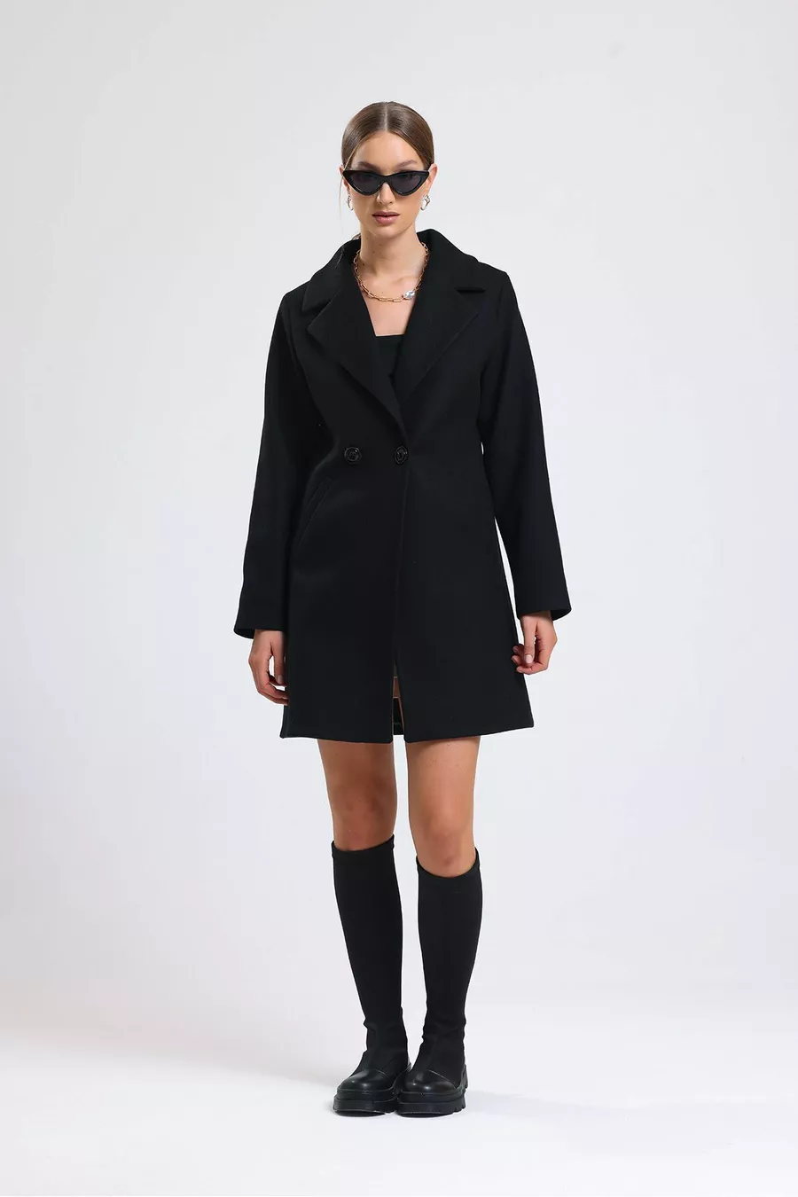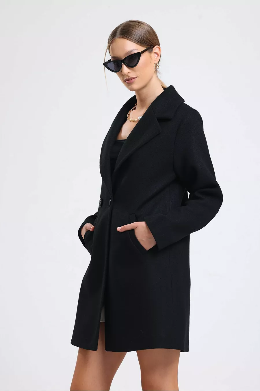 Cappotto corto in tessuto pettinato da donna con bottoni